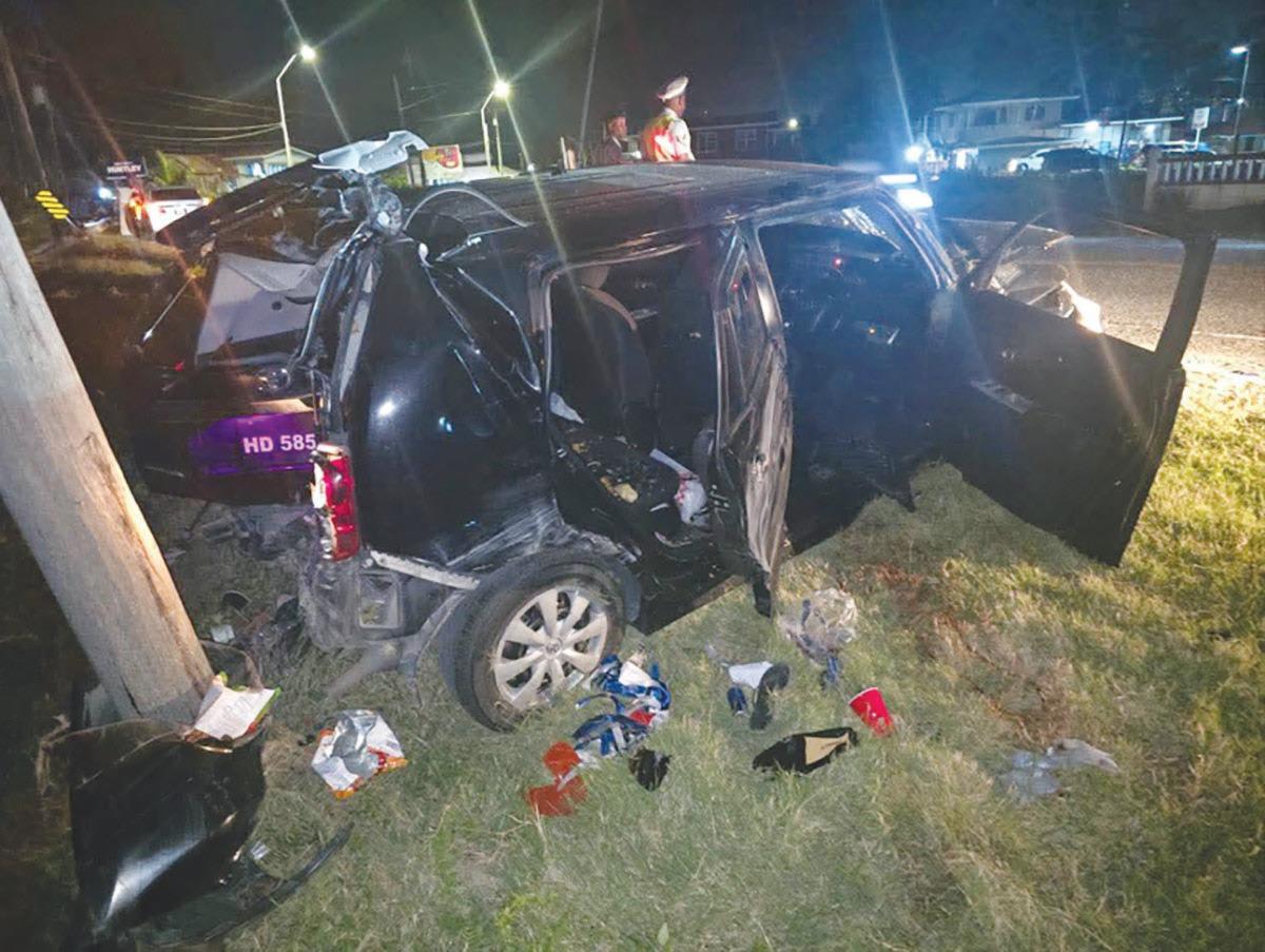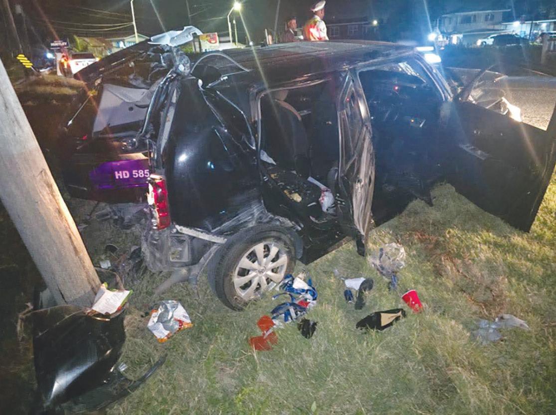 The vehicle subsequently crashed into a crash barrier and a Guyana Power and Light (GPL) utility pole, leaving it exten -