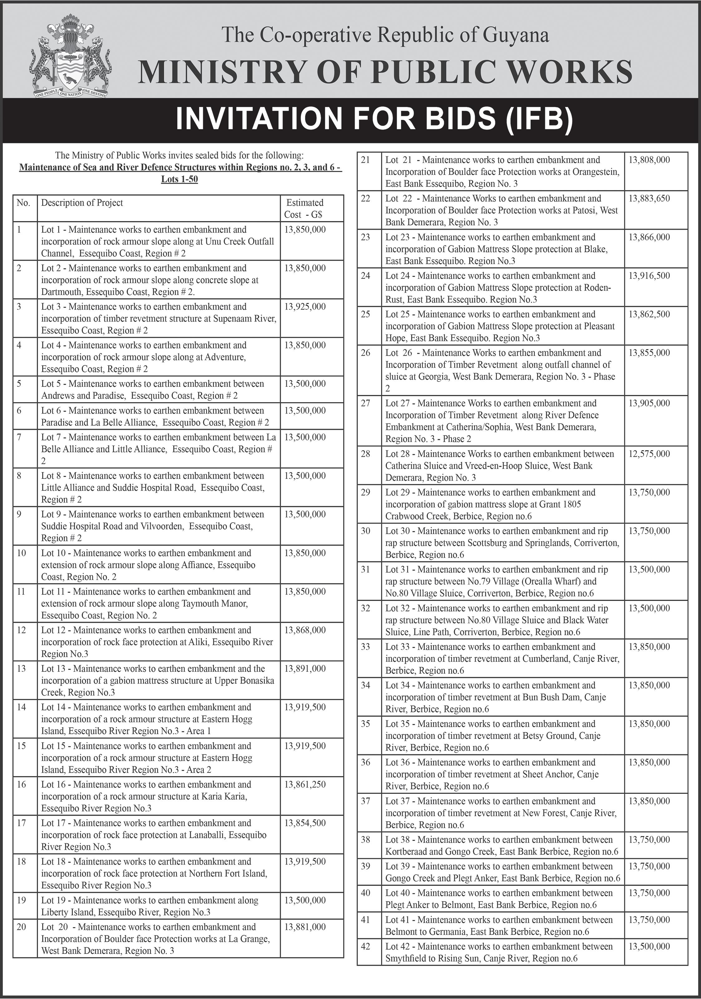 The Berbice Bridge will be closed to vehicular traffic on: Monday, March 23 –06:40h-08:10h and Tuesday, March 24 – 07:20h-08:50h.