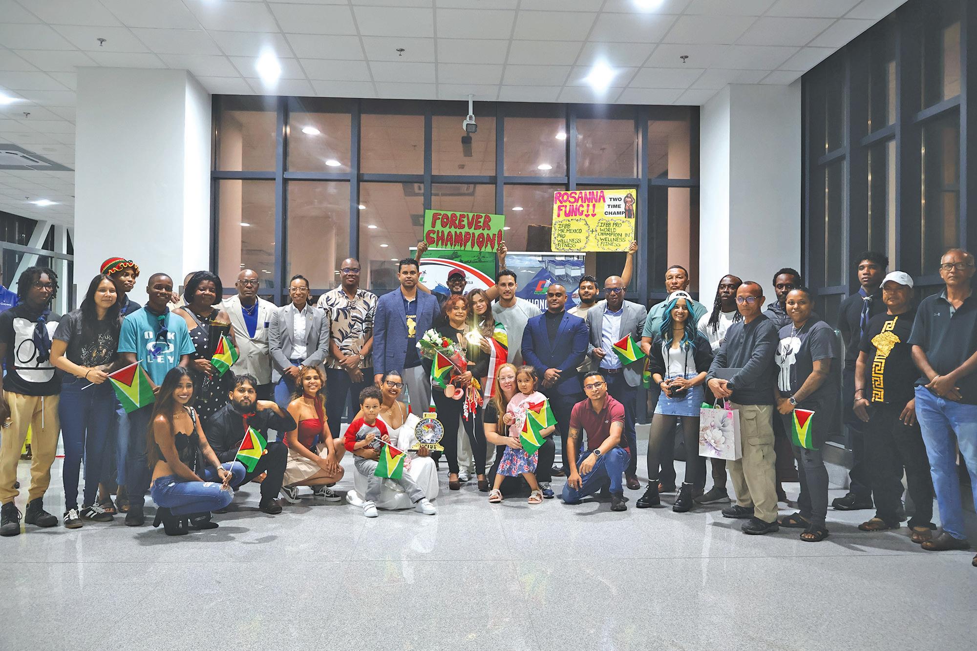 at the Cheddi Jagan International Airport (CJIA) and was met with musical stylings, flowers, cheers and an outpouring of support and love during the Ministry of Culture, Youth and Sport (MCYS)/Government of Guyana-planned welcome ceremony.