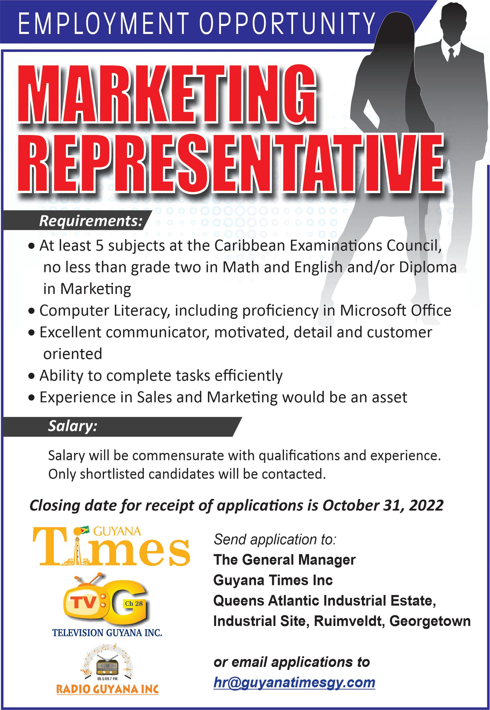 Sales Representative with Lorry Licence. Minimum requirement: Secondary Education. Attractive Salary. Call: 611-7839
