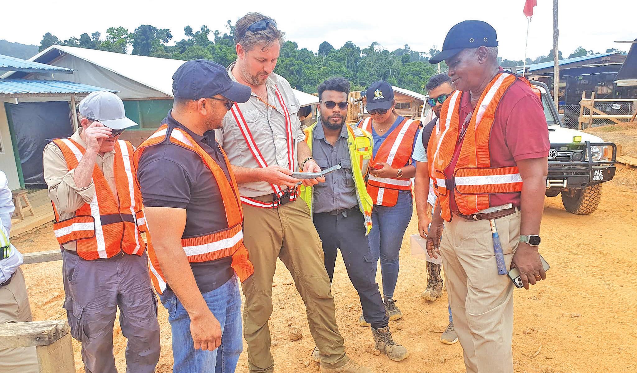 Ministers Vickram Bharrat and Robeson Benn along with their delegation during the tour of Reunion Gold’s Oko West project