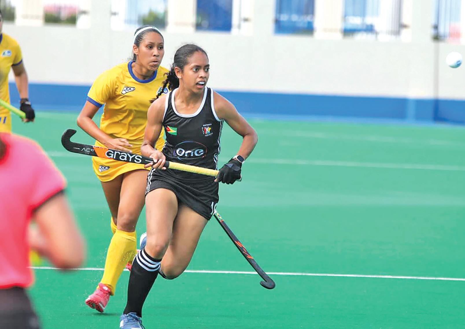 strikes. As both teams tired and sat deeper in defence determined not to give any scoring opportunity to their opponent, they both relied on counterattacking hockey to produce opportunities. Guyana came closest to scoring in the third quarter when full-back Trisha Woodroffe threaded a powerful longrange pass to Princessa