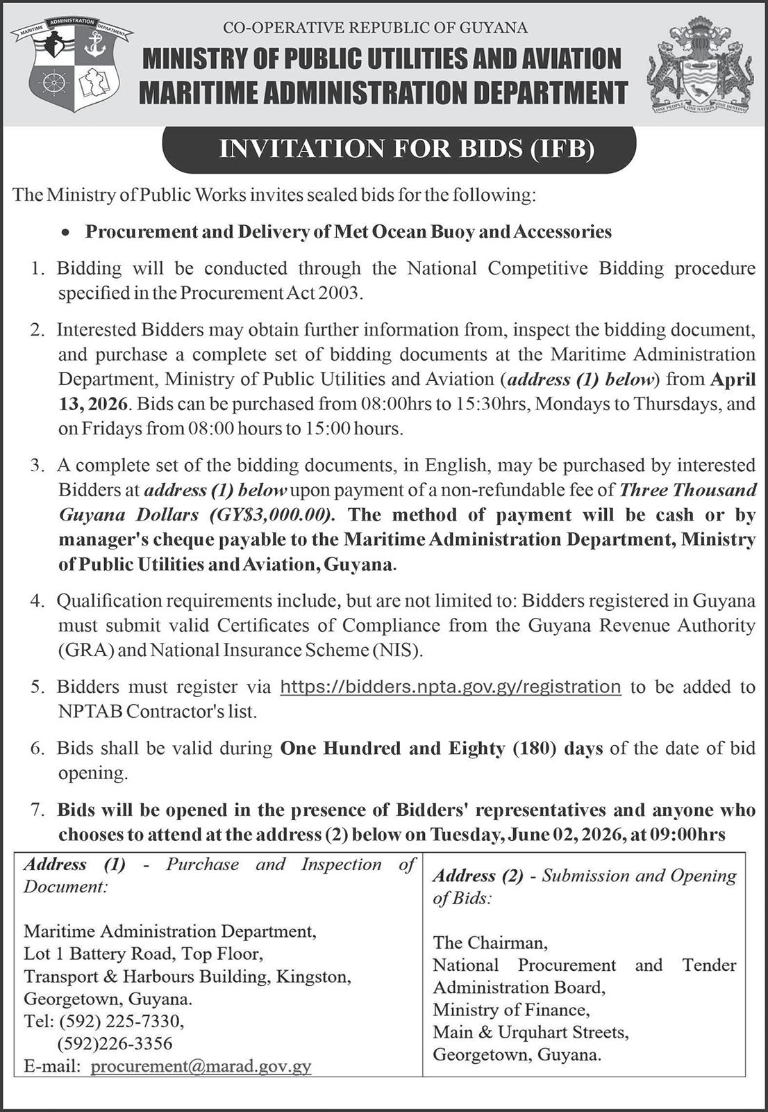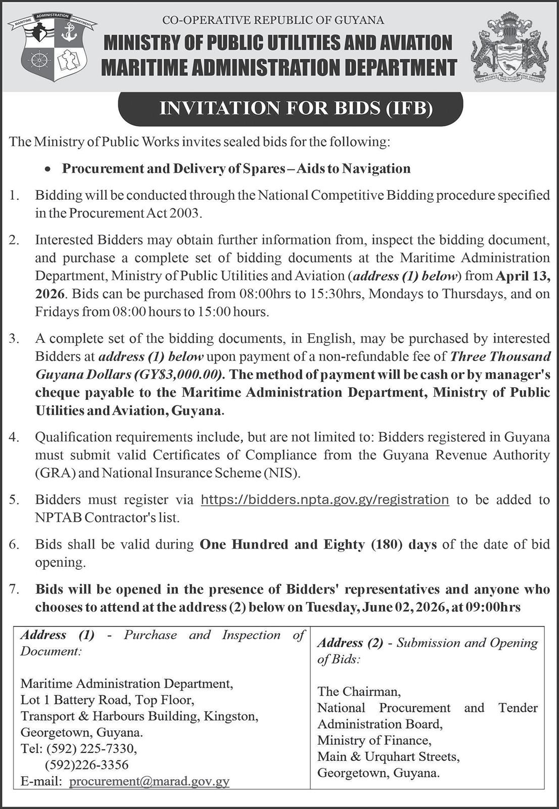 The Berbice Bridge will be closed to vehicular traffic on: Parika and Supenaam departure times – 05:00h, 10:00h-12:00h, 16:00h, 18:30h daily. Saturday April 11 –11:35h–13:05h and Sunday April 12 – 12:35h–14:05h.