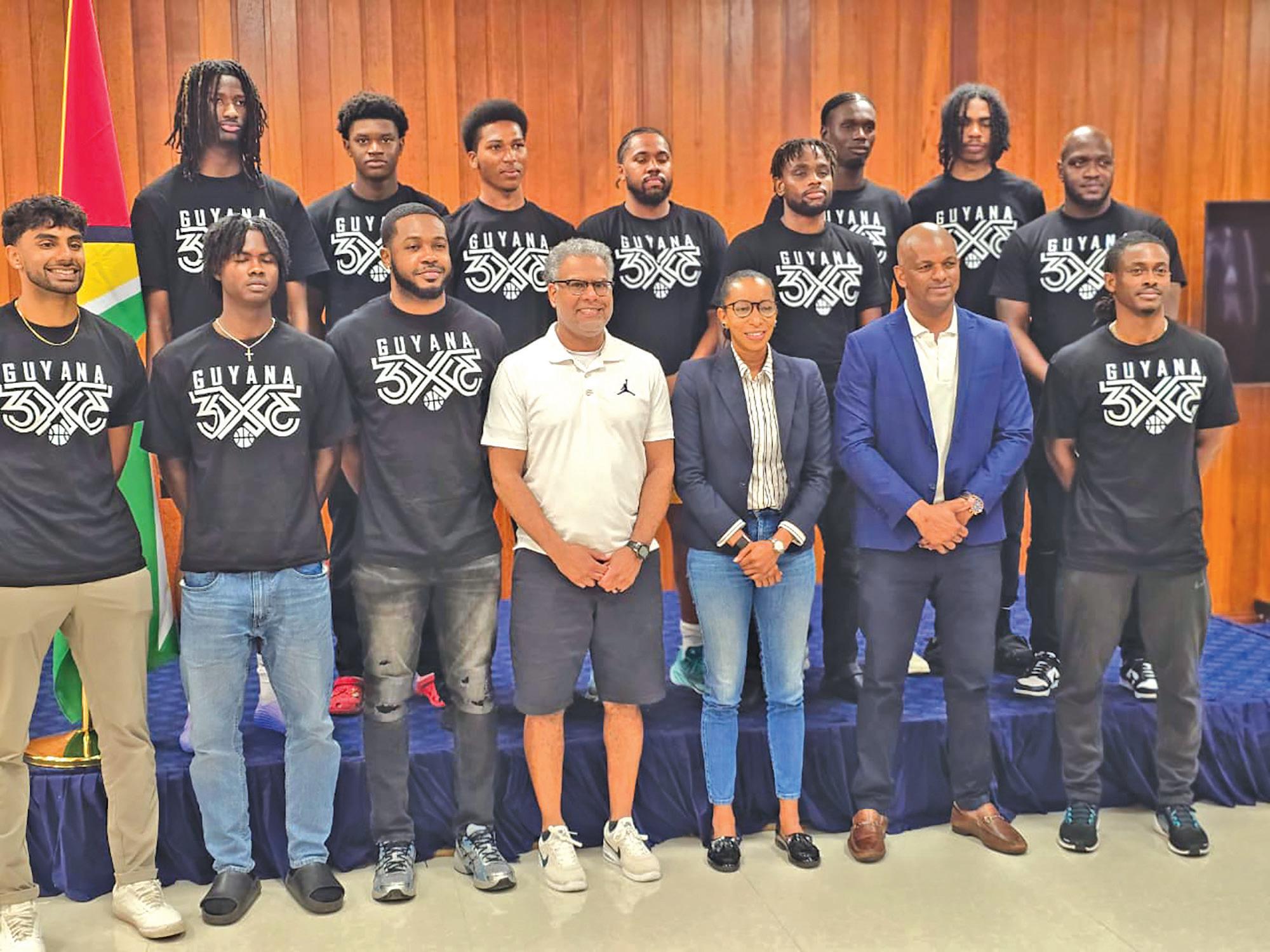 Members of the Guyana Olympic Association along with basketball players