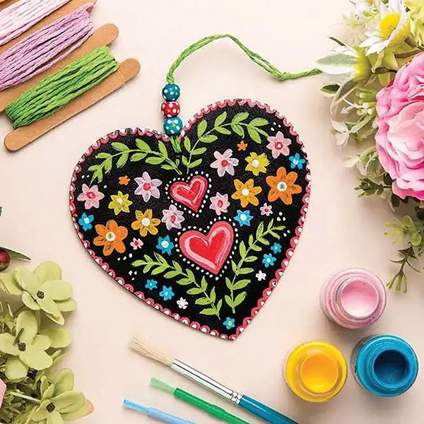 Embrace the charm of folklore with a delightful painting project: create a floral heart decoration by painting simple flower shapes onto a wooden heart. This quick and easy craft is a perfect way to add a touch of rustic elegance to your décor. What you'll need