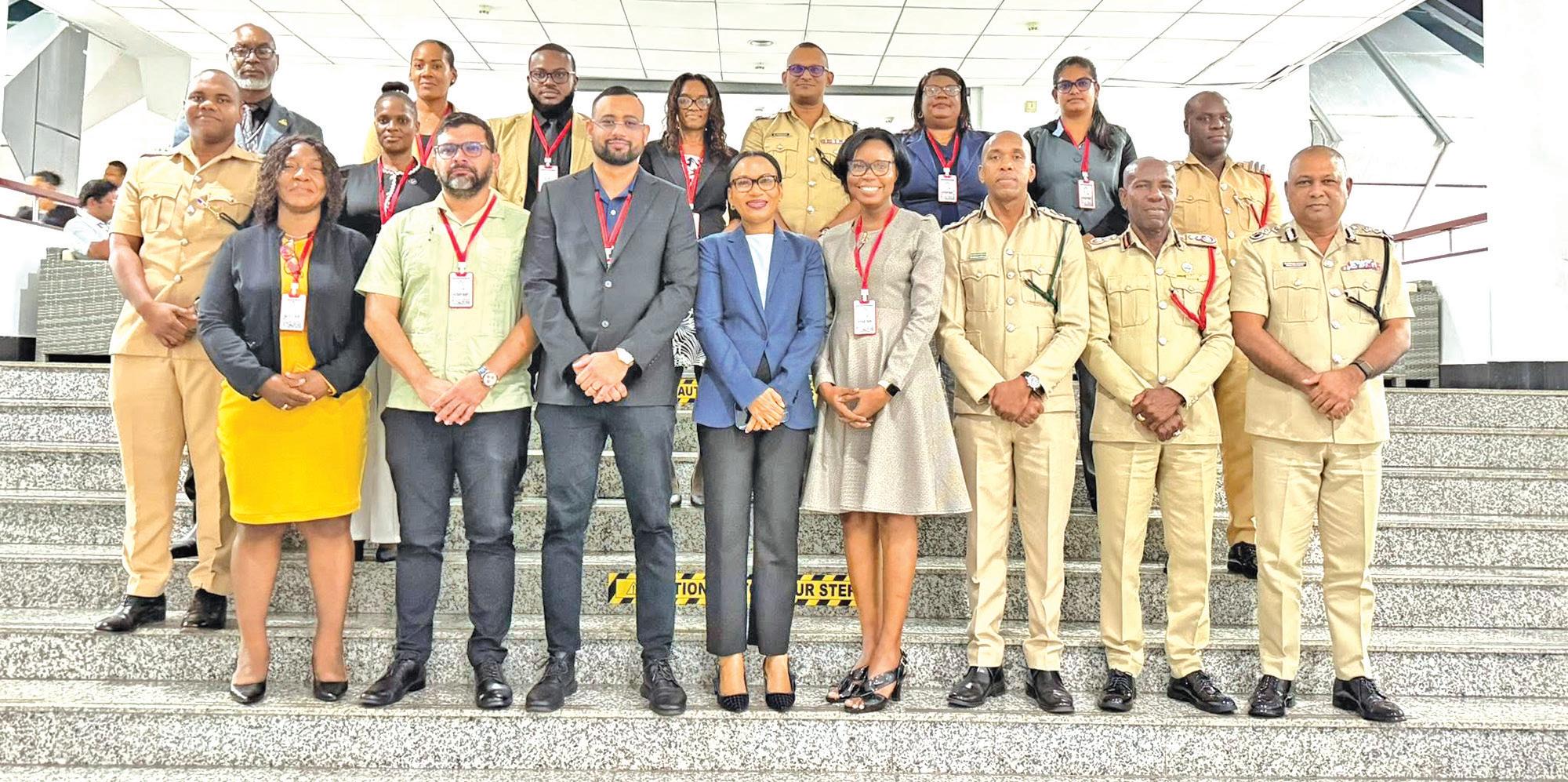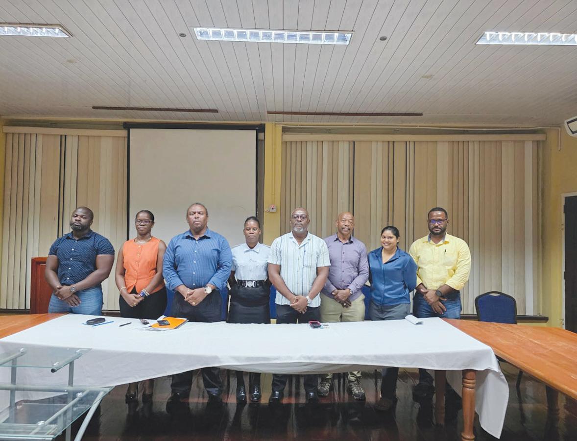 GAPLF President Franklin Wilson (4th from right) is flanked by (from right) Denroy Livan, Lisa Oudit, Gordon Spencer, Nedisha Tinnis, Roger Rogers, Kiana Benjamin, and Bjorn Williams