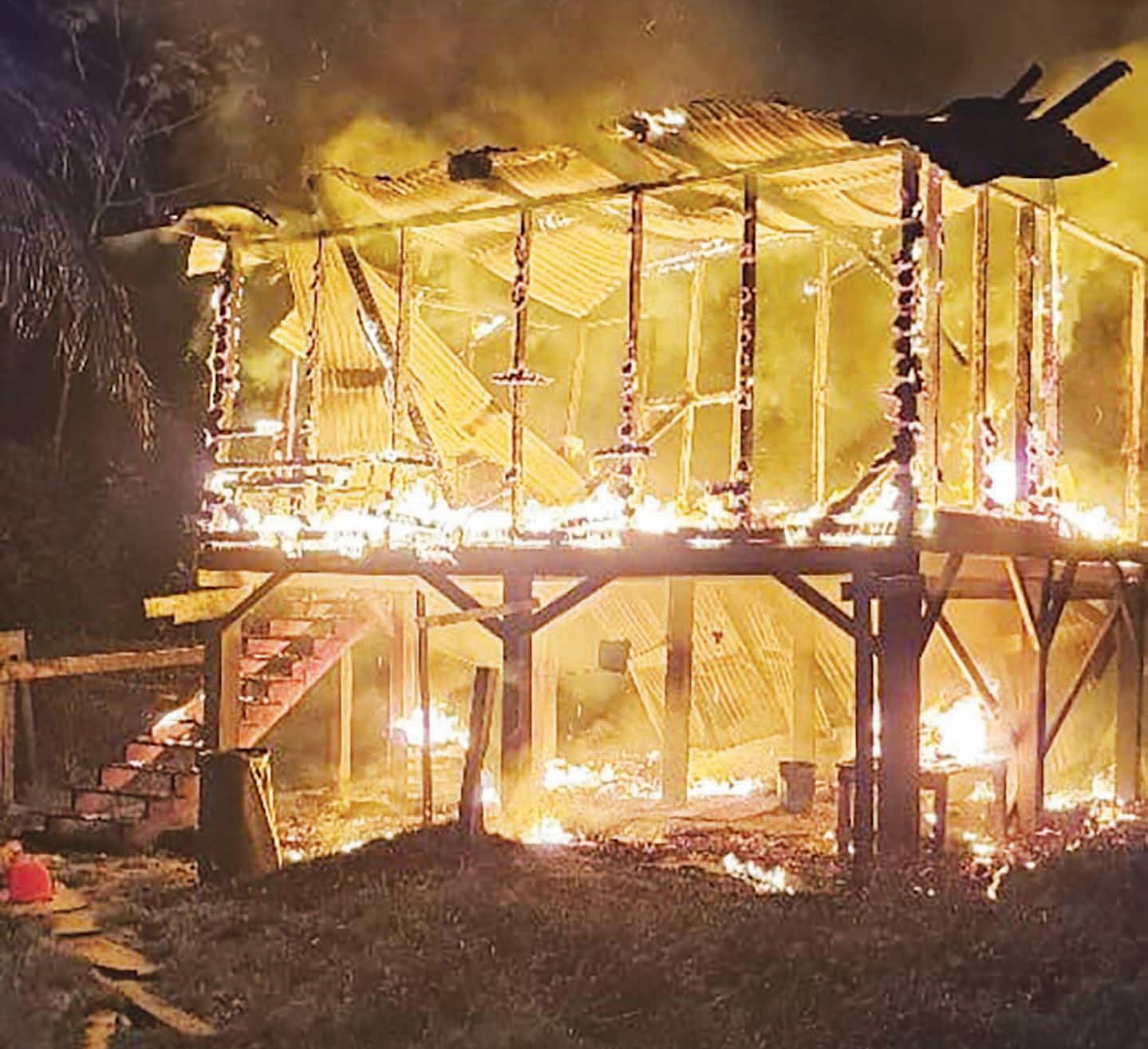 The house on fire at Number 65 Village, Corentyne, Berbice