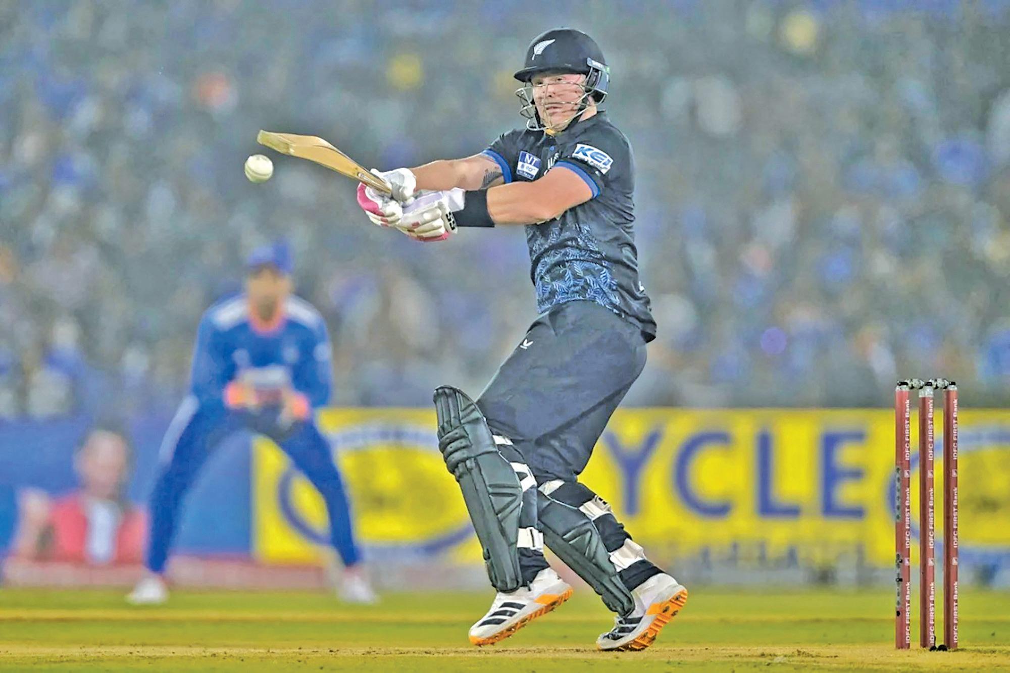 After being sent in in dewy conditions, New Zealand, too, had made a blazing start. Even though only one of their top five crossed 25, each of them struck in excess of 140. India made a brief comeback in the middle overs, but Mitchell Santner’s 47 not out off 27 balls lifted them to 208 for 6. At the post-match presentation, Santner said they probably needed 300. He was only half-joking.