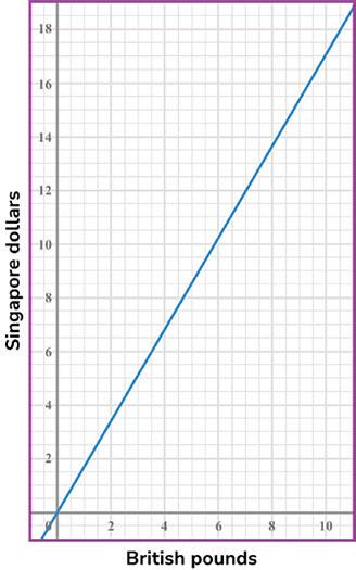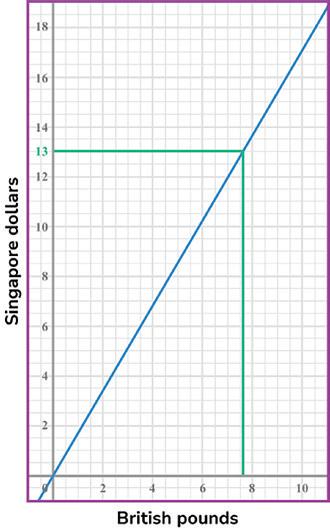 This graph shows the relationship between British pounds and Singapore dollars. Use the graph to estimate the number of British pounds (£) there are for 13 Singapore dollars ($).