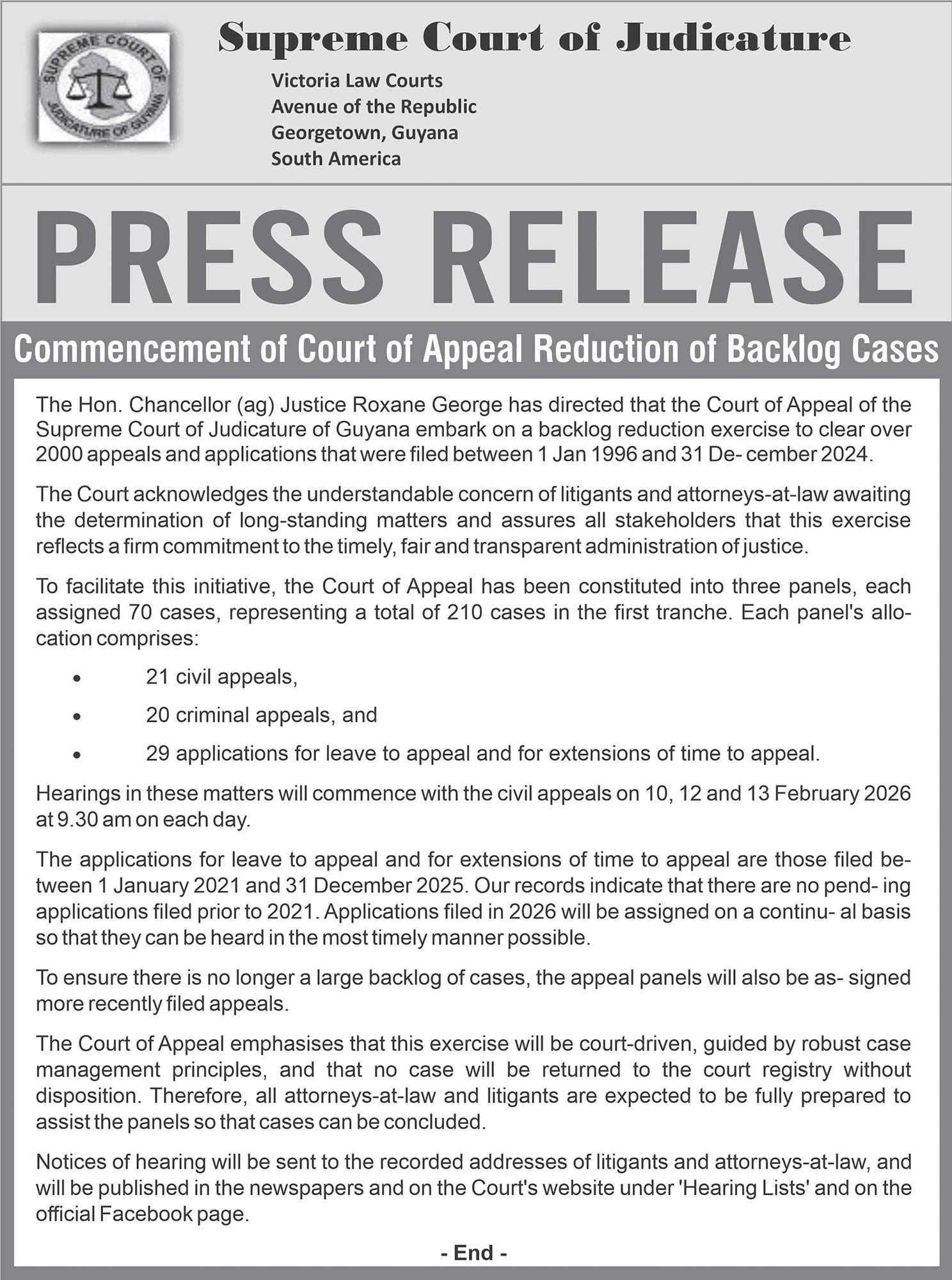 At this critical juncture, all Parliamentary actors, particularly Opposition Members, must act with a heightened sense of national responsibility. Leadership decisions must reflect Guyana’s forward momentum, not reopen the door to practices and outcomes the nation has consciously rejected.