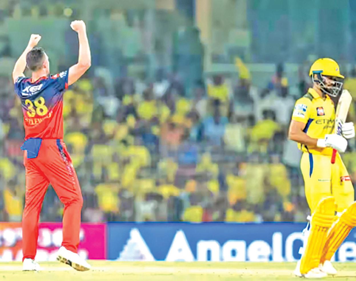 Once three wickets were gone in the powerplay, the rest of the chase was just a meander towards an inevitable end. The spinners didn’t give much to Rachin Ravindra and Shivam Dube to hit. The asking rate got high, and they were obliged to hit, realising the pitch was not as easy as RCB had made it look.