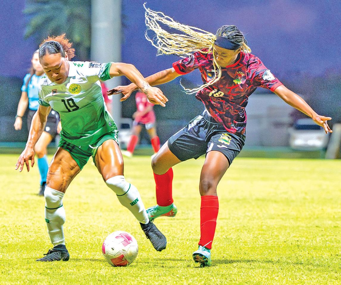 match on Thursday eve ning, Guyana struck their first goal in the 15th minute off an own goal by Antigua and Barbuda defender Karmiellia Hughes.