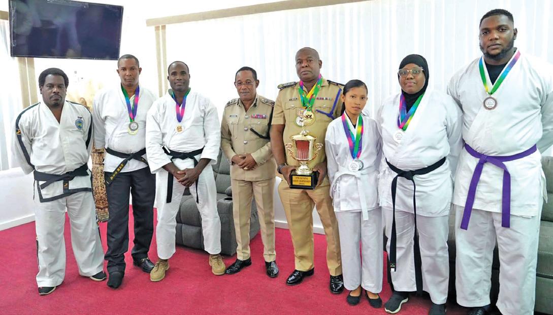 Members of the GPF Karate Team with Commissioner of Police Clifton Hicken