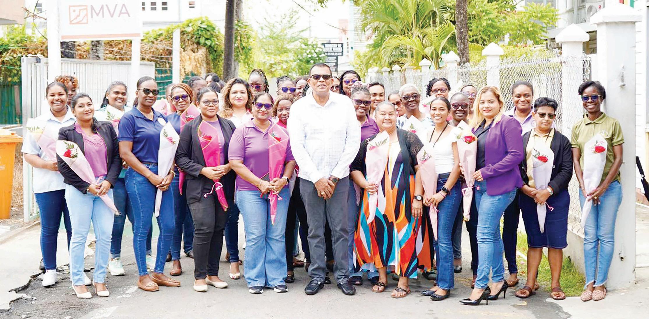 In observance of International Women’s Day 2026, which will be celebrated on Sunday, March 8, the Ministry of Public Works on Friday hosted a small ceremony recognizing and celebrating the dedication and contributions of the women helping to drive Guyana’s infrastructure transformation. In the photo, Minister within the Ministry of Public Works, Hon Madanlall Ramraj, took time out to celebrate with the female staff