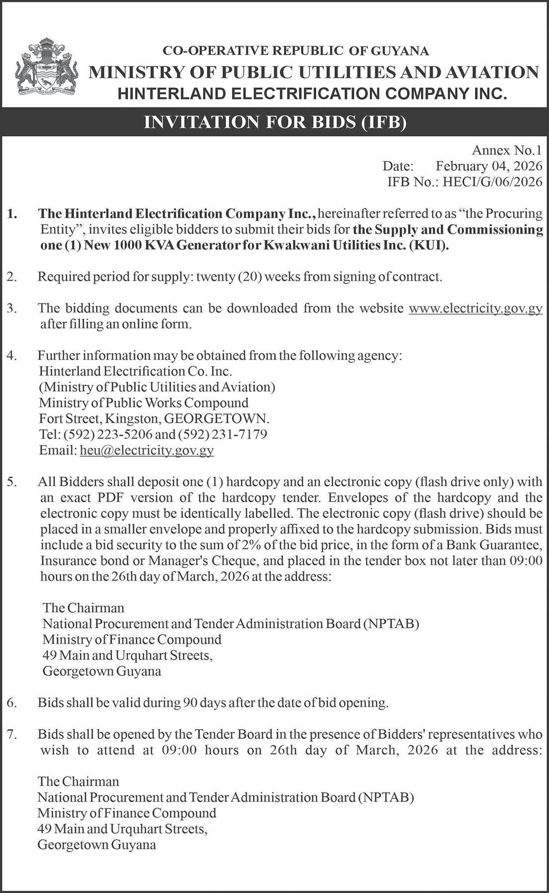 The Berbice Bridge will be closed to vehicular traffic on: Saturday, March 7 –06:20h–07:50h, and Sunday, March 8 – 06:40h–08:10h.