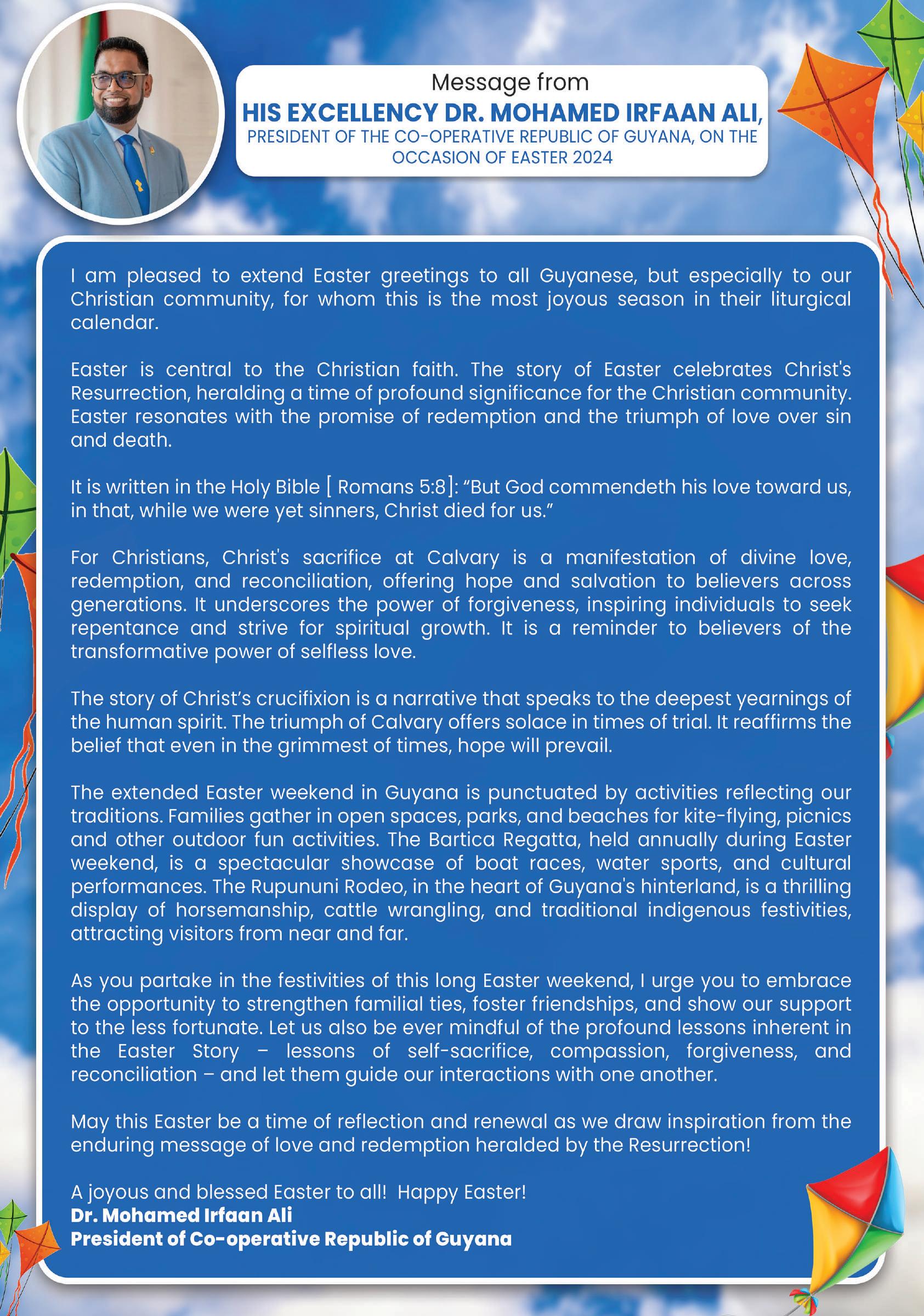 For Guyanese outside the Christian faith, Easter is firmly identified with kite-flying. Some say that the tradition was started to demonstrate the ascension of Christ to heaven, but there is no conclusive evidence to verify this.