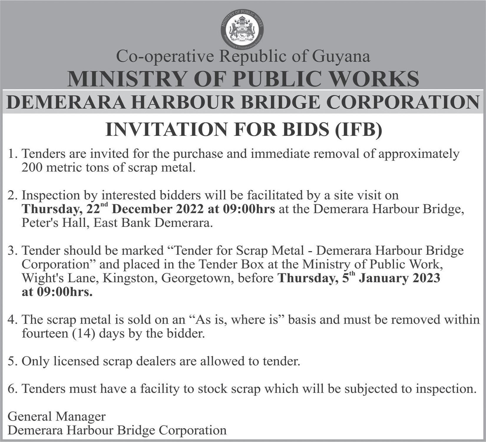 The Demerara Harbour Bridge will be closed to vehicular traffic on: