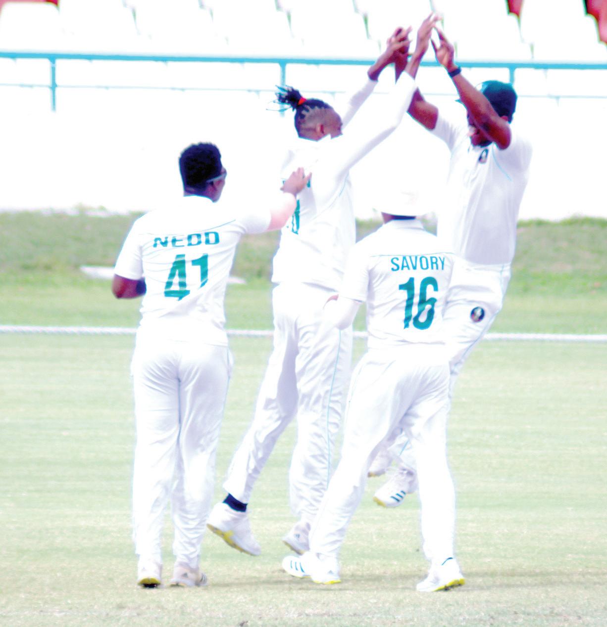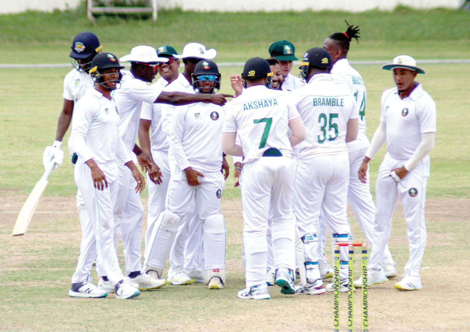 FOW: 5/1 (1.4) Sheyne Moseley 9/2 (2.3) Zachary McCaskie 30/3 (16.1) Sharmarh Brooks 35/4 (19.3) Jonathan Drakes