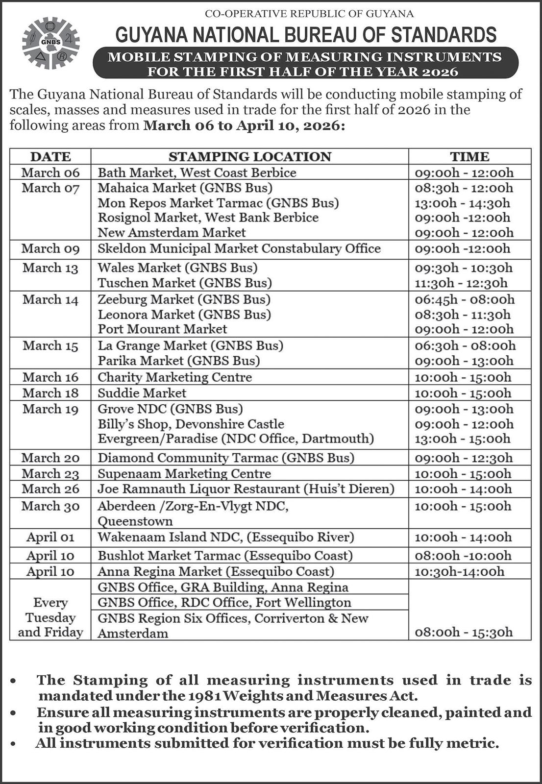 The Berbice Bridge will be closed to vehicular traffic on: