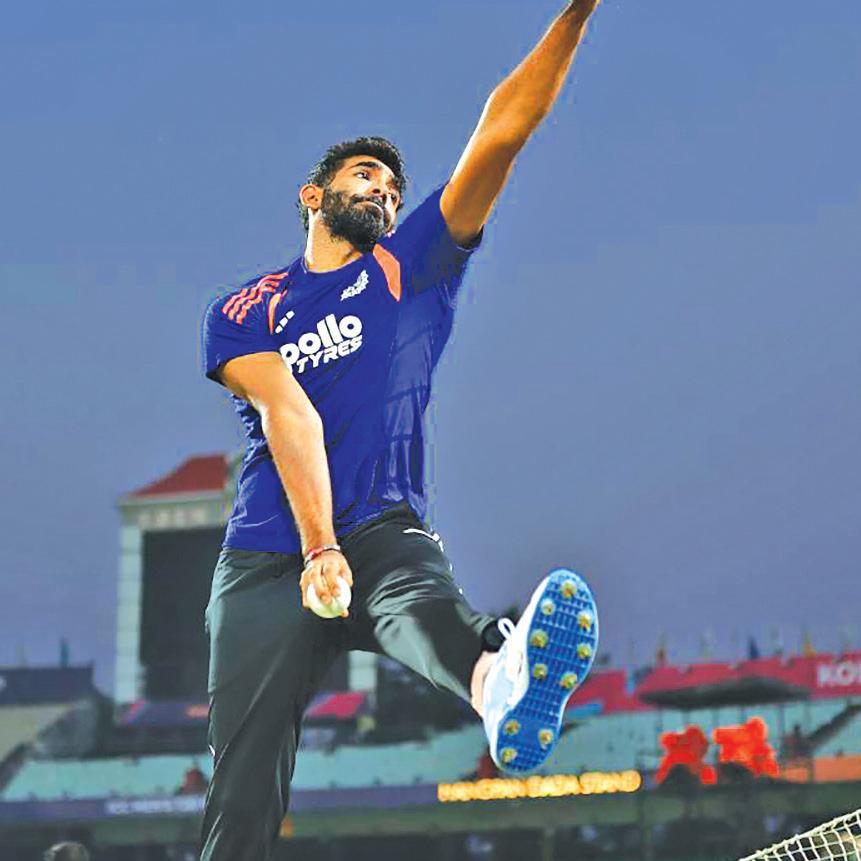 India’s fast bowler, Jasprit Bumrah, at a practice session