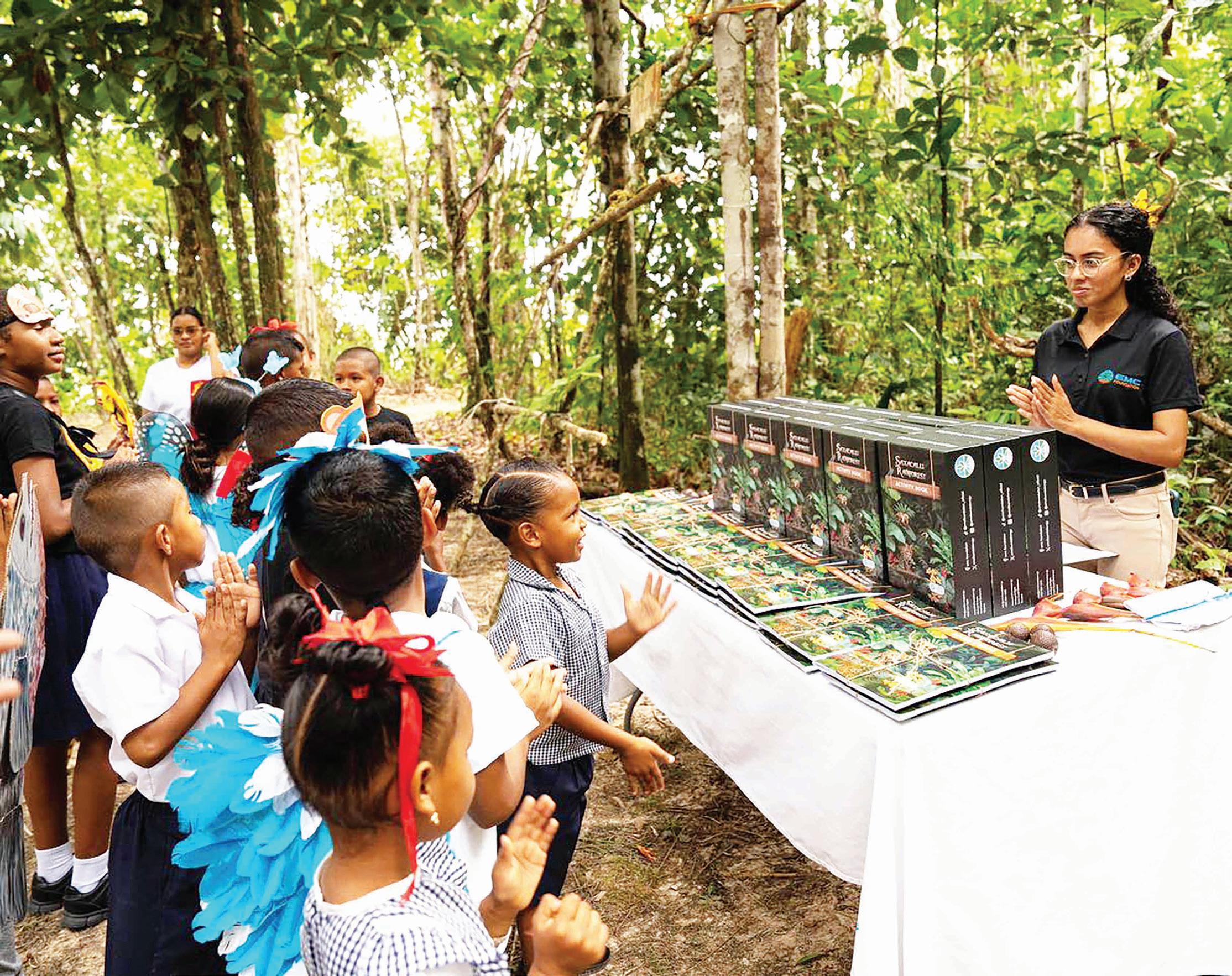 “Saxacalli Rainforest Activity Book” was launched on Friday at the Saxacalli Rainforest Centre on the left bank of the Essequibo River. The publication, developed by the EMC Foundation, the non-profit arm of Environmental Management Consultants (EMC), aims to strengthen environmental literacy among pupils of the Saxacalli Primary and Nursery Schools. Education Minister Sonia Parag, along with Managing Director of EMC Shyam Nokta, delivered the keynote address and encouraged students to see themselves as “agents of change”, reminding them that leadership can begin at any age (Education Ministry photos)