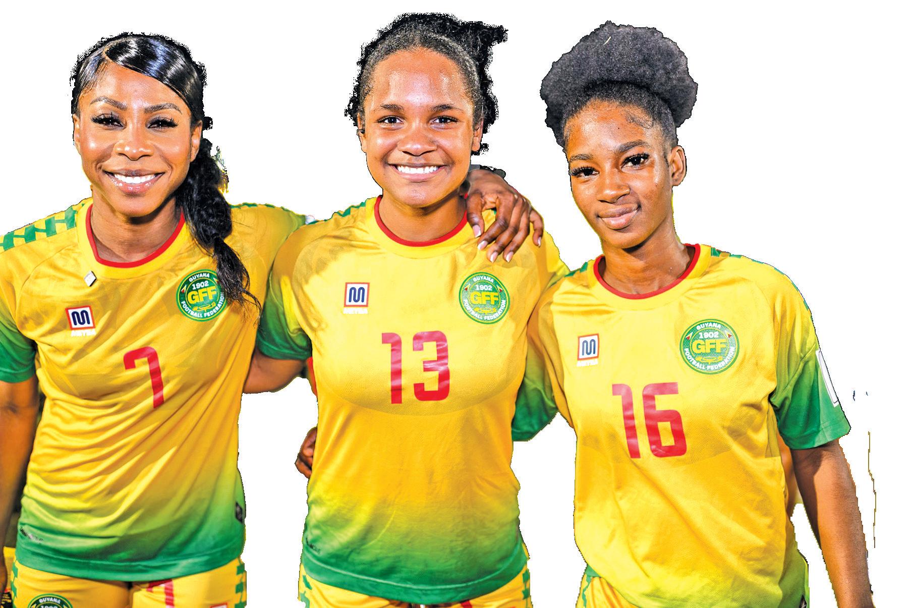 Guyana goal scorers Otesha Charles (left), Adelina Ritchie and Sandra Johnson