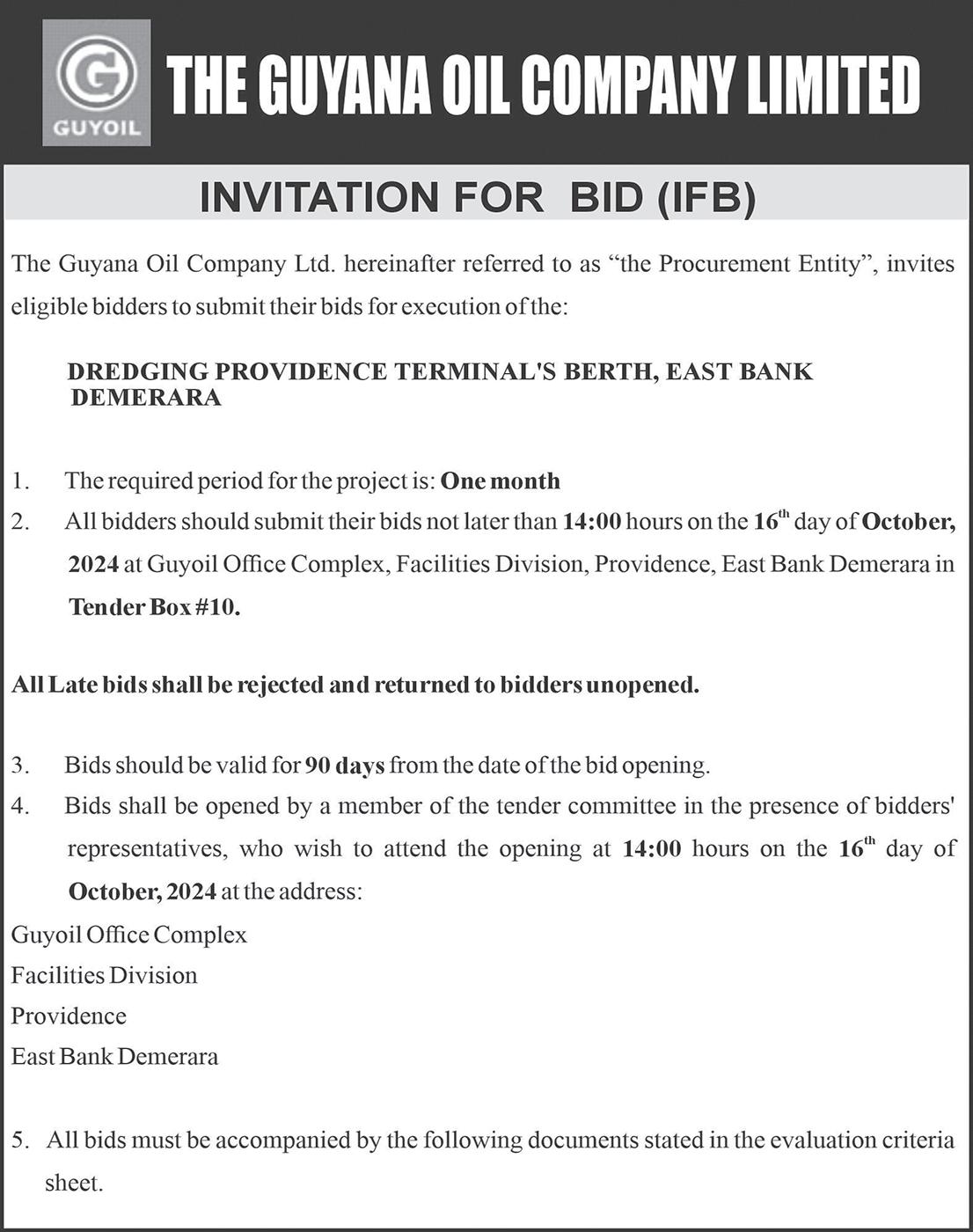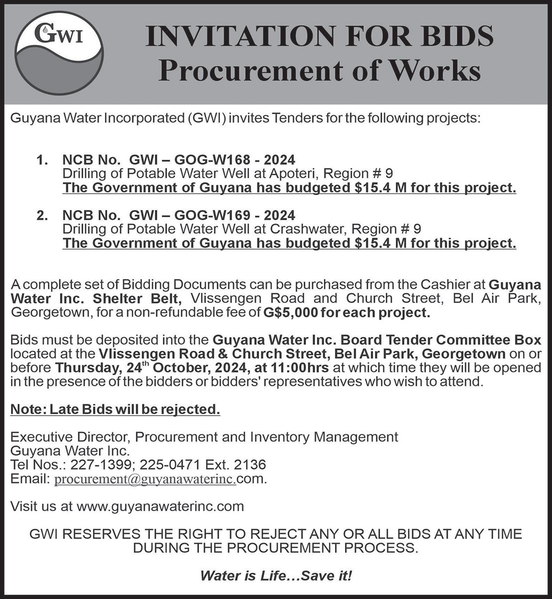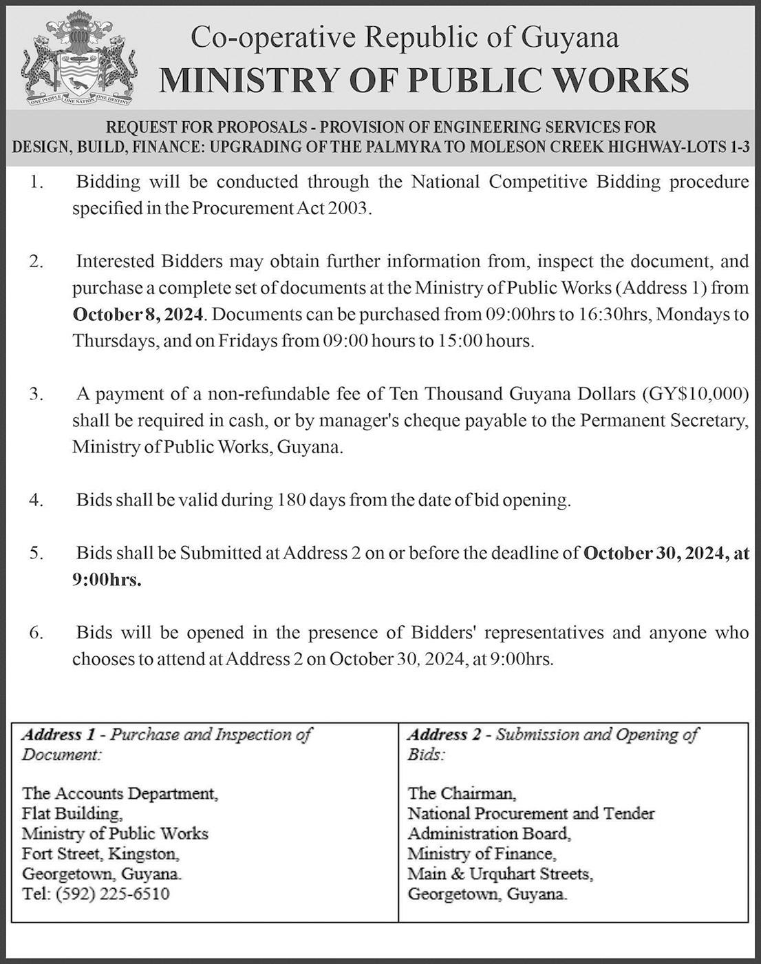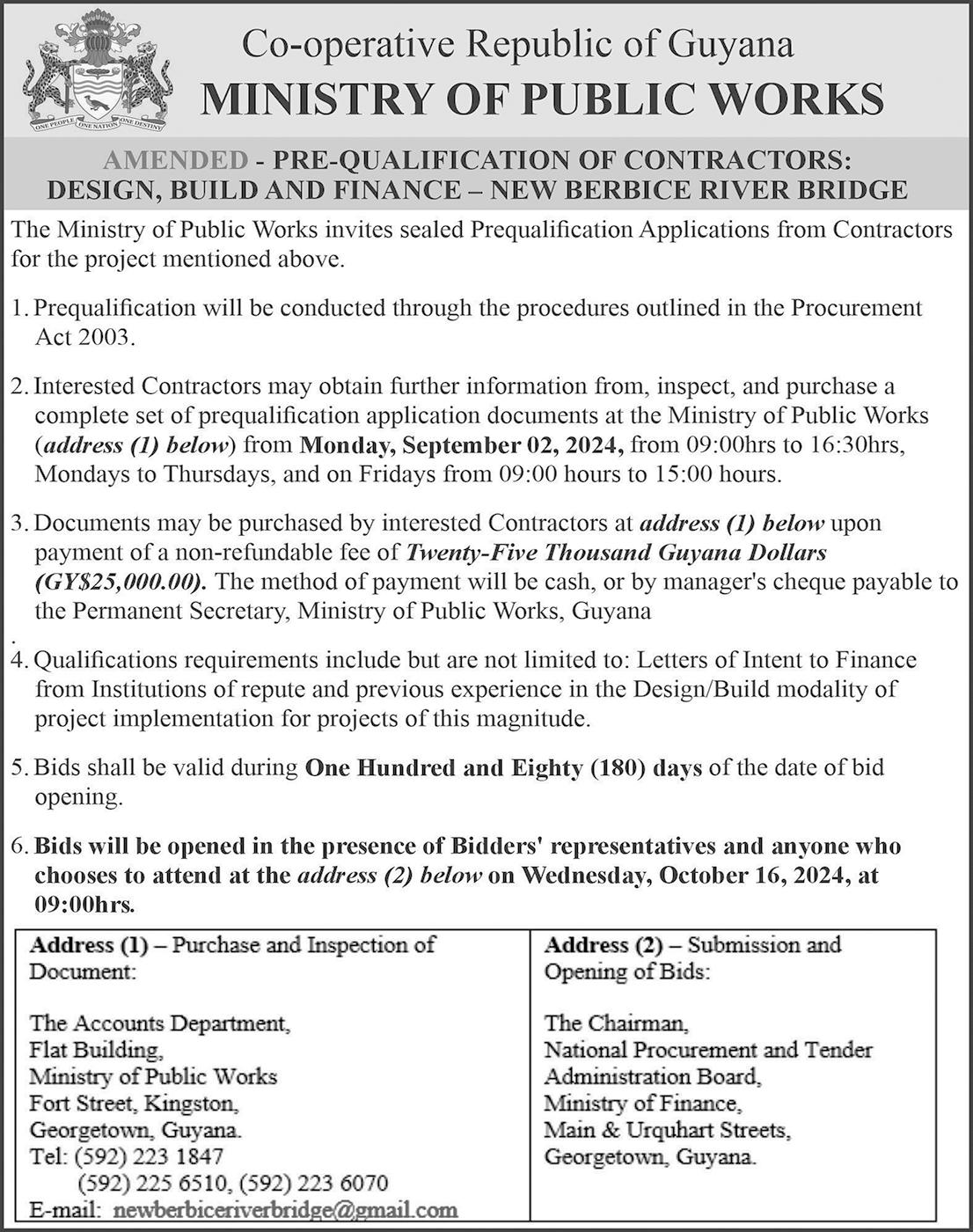 Board (NPTAB) to Trinidad company Kalco Guyana Incorporated, had to be terminated in May 2024 by the Ministry of Public Works.