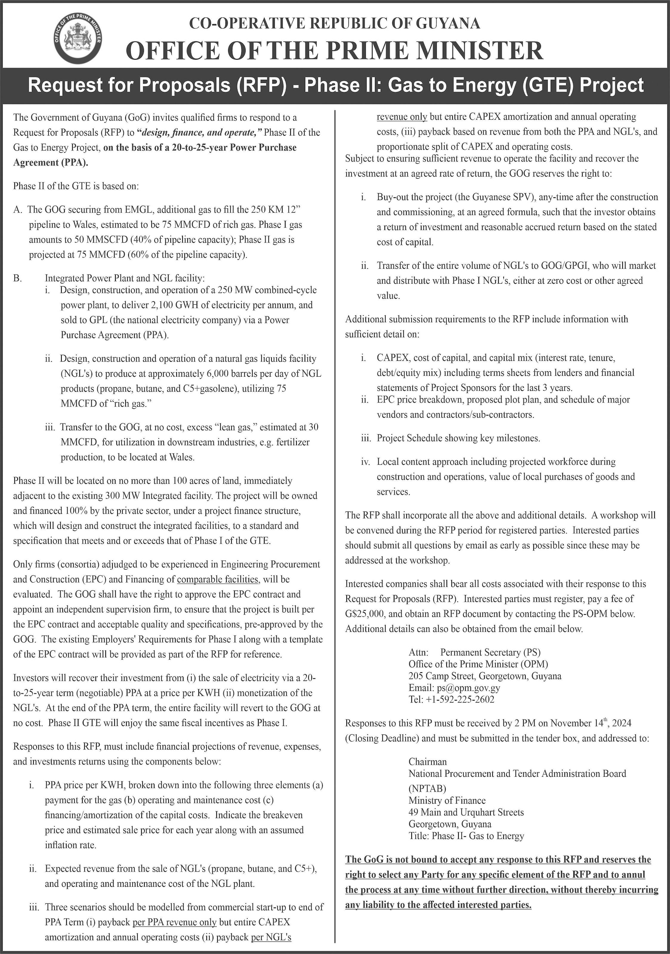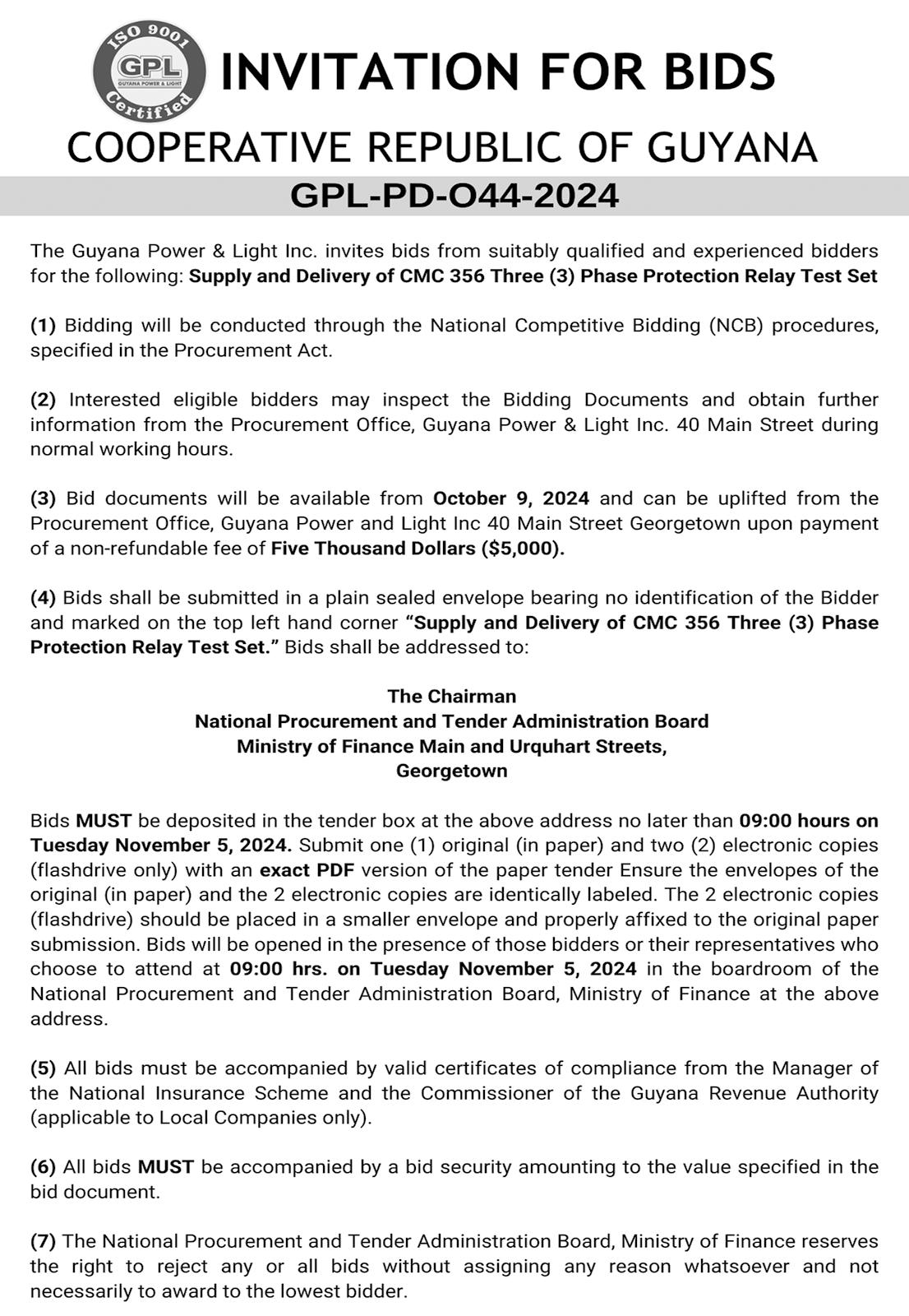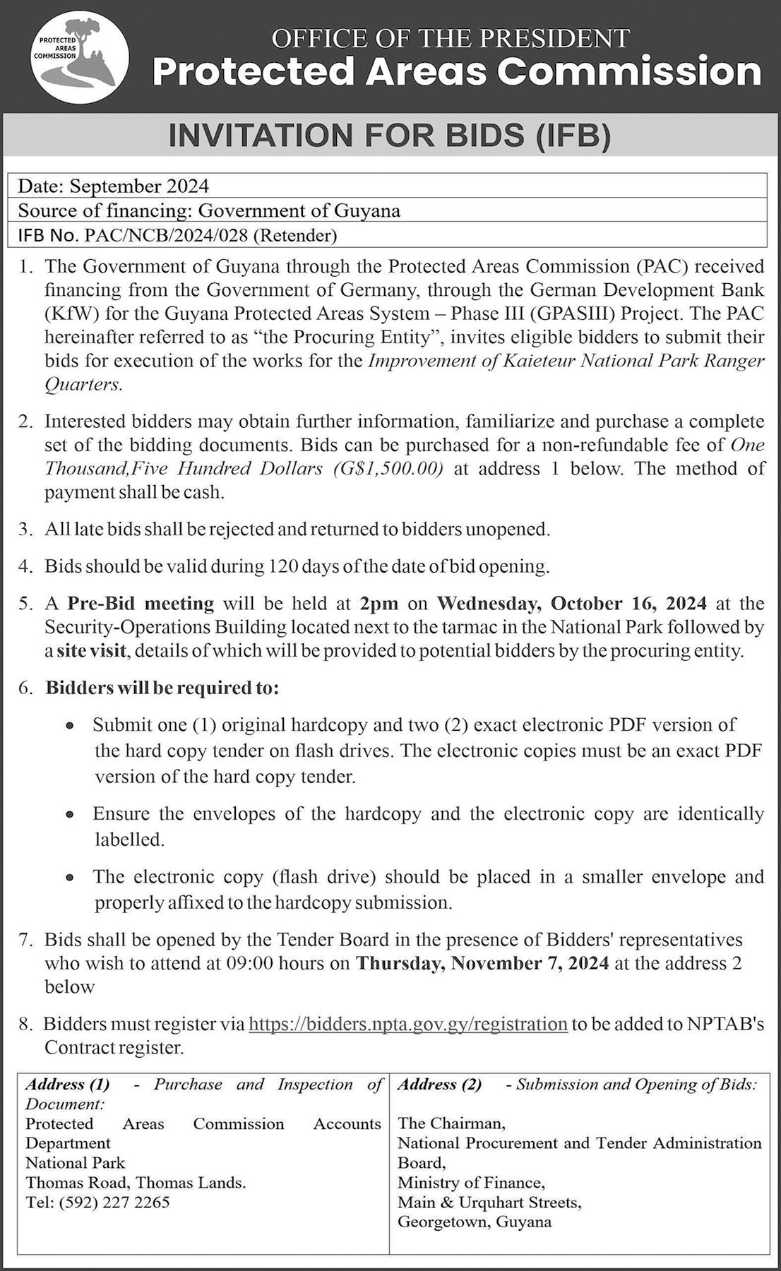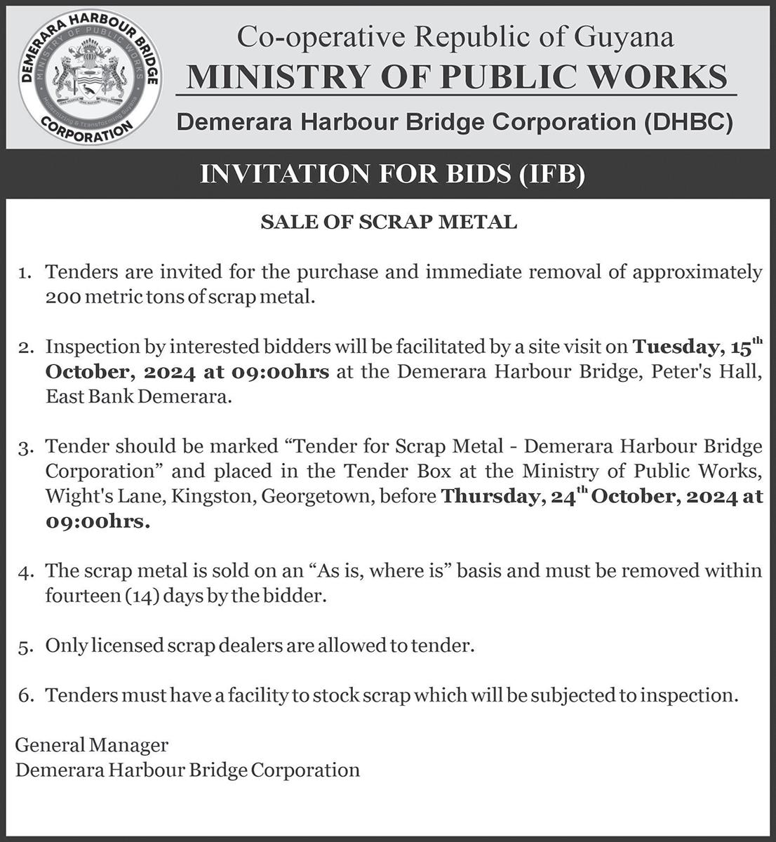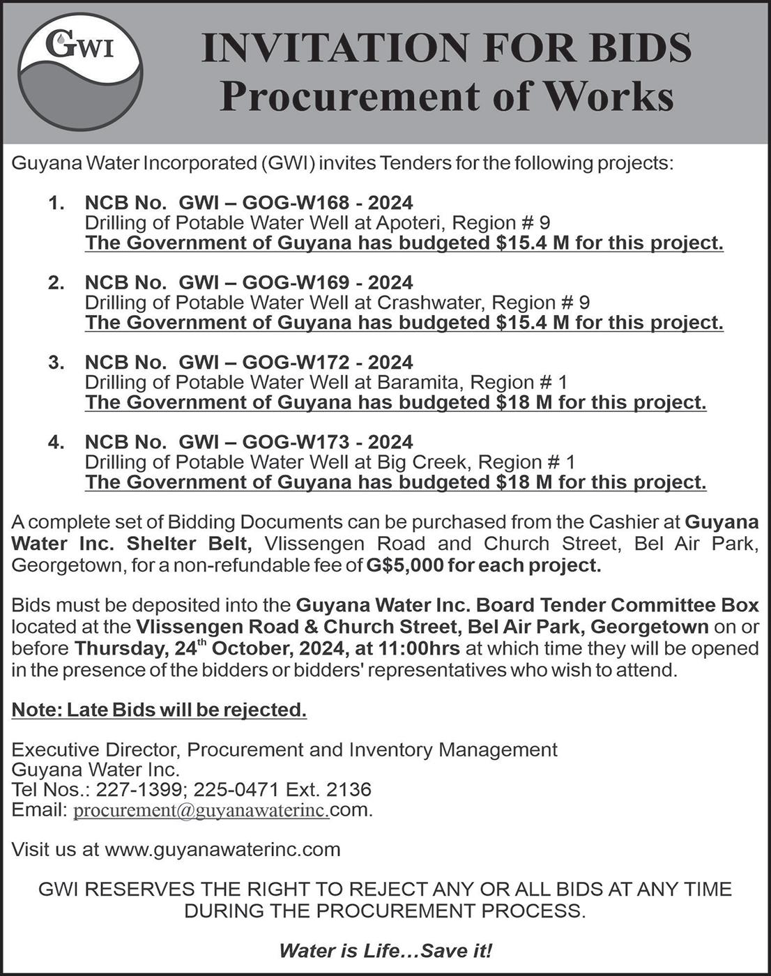 Board (NPTAB) to Trinidad company Kalco Guyana Incorporated, had to be terminated in May 2024 by the Ministry of Public Works.