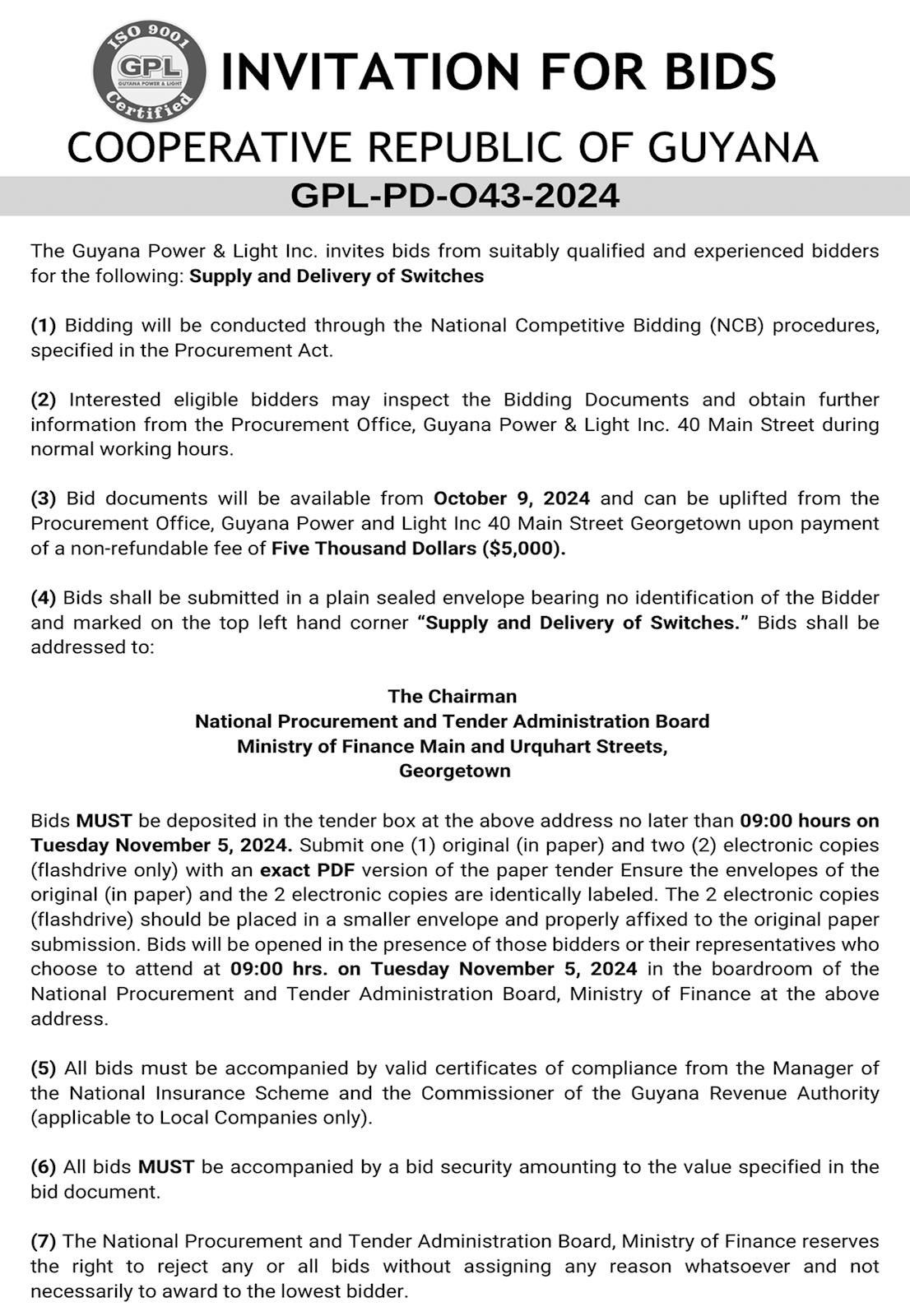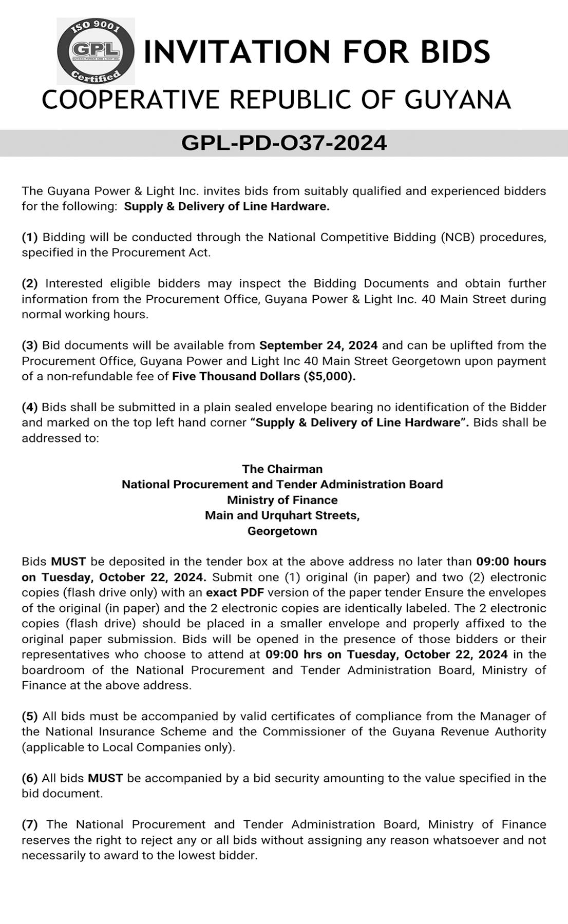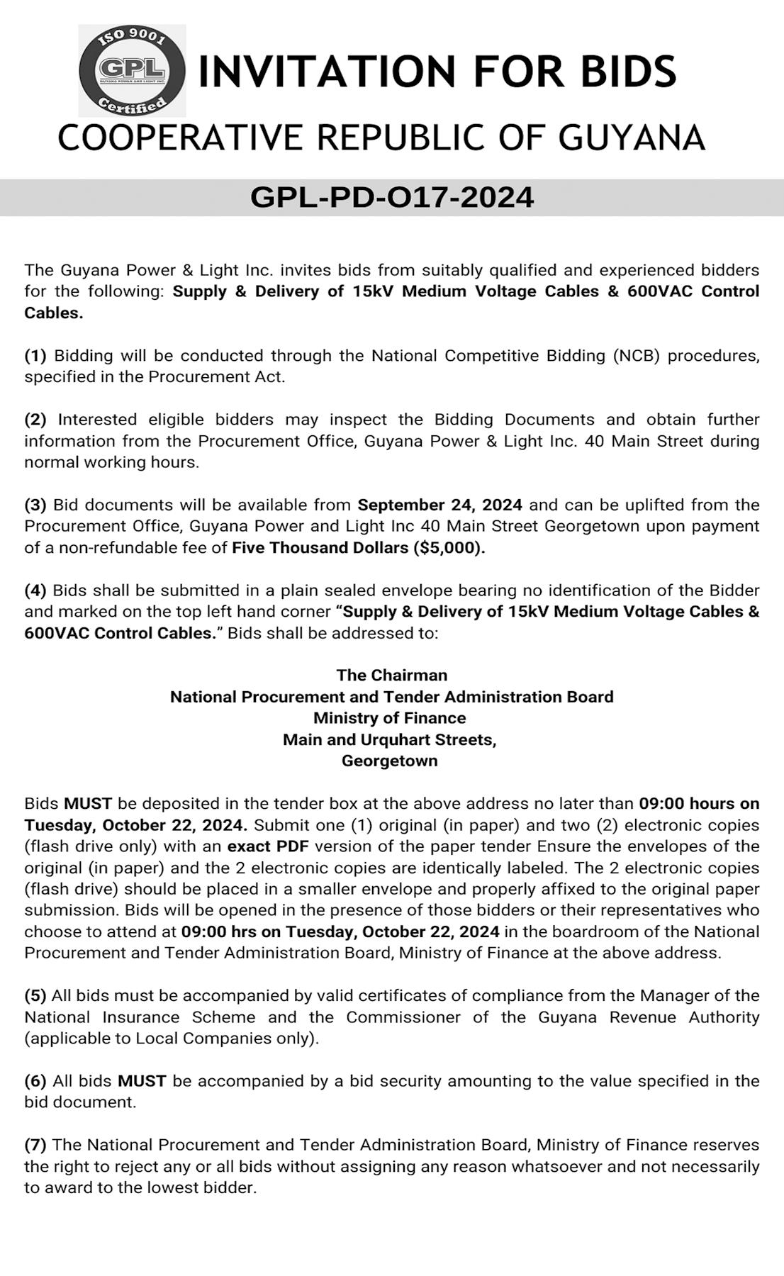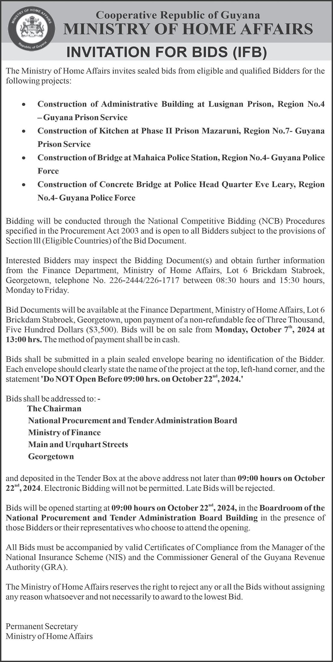 Board (NPTAB) to Trinidad company Kalco Guyana Incorporated, had to be terminated in May 2024 by the Ministry of Public Works.