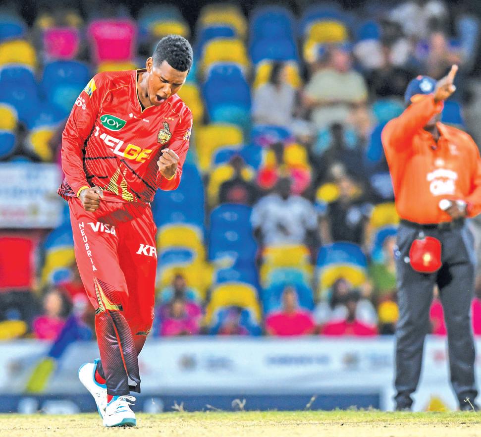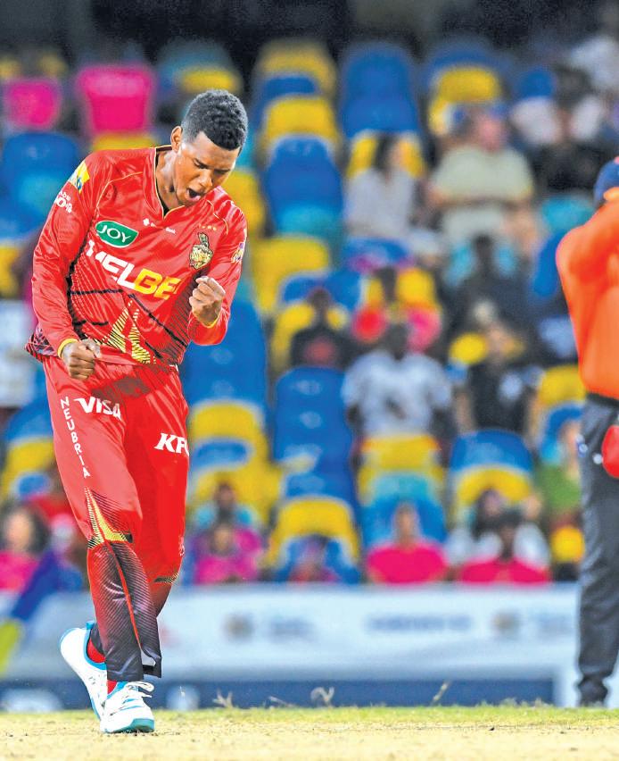Tsmashed a six off the penultimate delivery as Trinbago Knight Riders ended Barbados Royals’ unbeaten record in the 2024 Republic Bank Caribbean Premier League (CPL) after a nerve-jangling two-wicket victory at Kensington Oval.