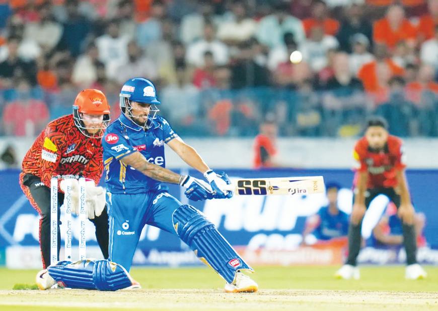 Kumar down the ground, before hitting Jaydev Unadkat - brought in for T Natarajan, who had a niggle - for backto-back sixes. Kishan then took 23 of Bhuvneshwar's second over, hitting him for one four and three sixes.