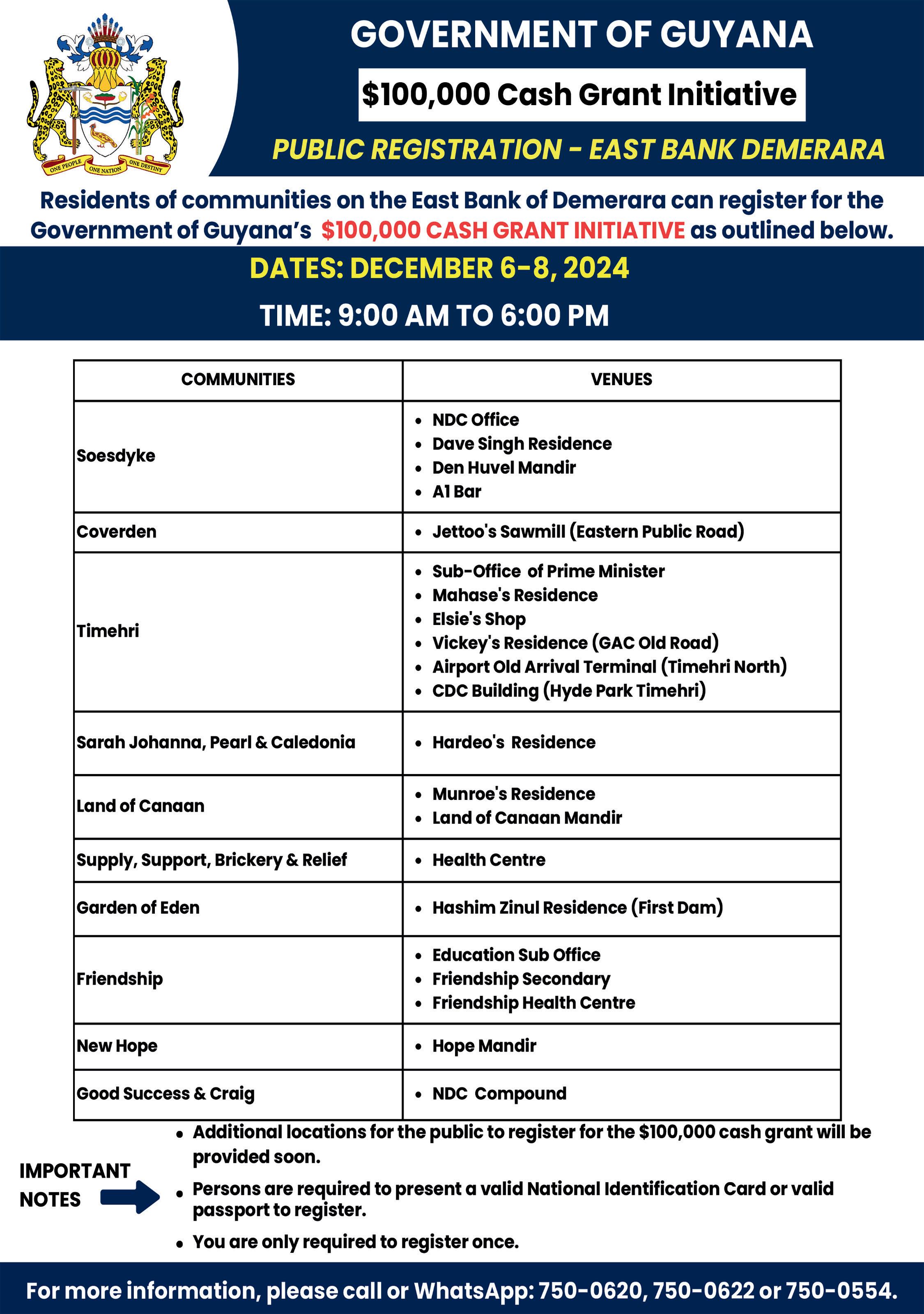 A. Ally and Sons, 15-9 Main and New Streets, New Amsterdam Sensation Variety and Gift Shop, 10 Number 78 Public Road, Corriverton Essequibo: ICAN Technologies, 1 Apartment 47 WD’s Mall, Charity ICAN Technologies, 53 Cottonfield, Essequibo Coast S&N Creole Snackette, Cottonfield Old Road, Essequibo Coast