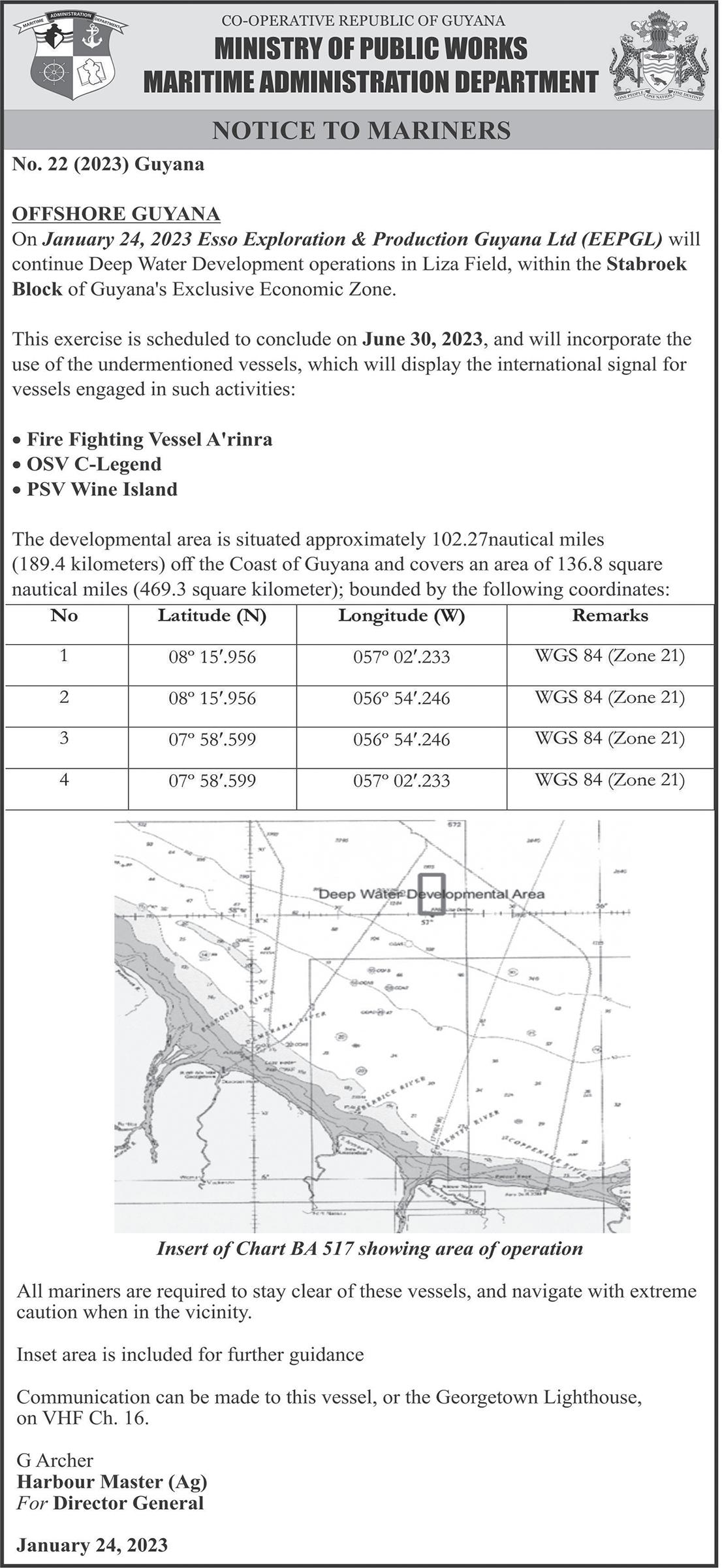 The third development in the Stabroek Block –Payara – is on track to come online by the end of 2023 with a gross production capacity of approximately 220,000 bopd; while the Yellowtail – the fourth development – is slated for 2025 with a production capacity of some 250,000 bopd. Both these development projects have been approved by the Guyana Government.