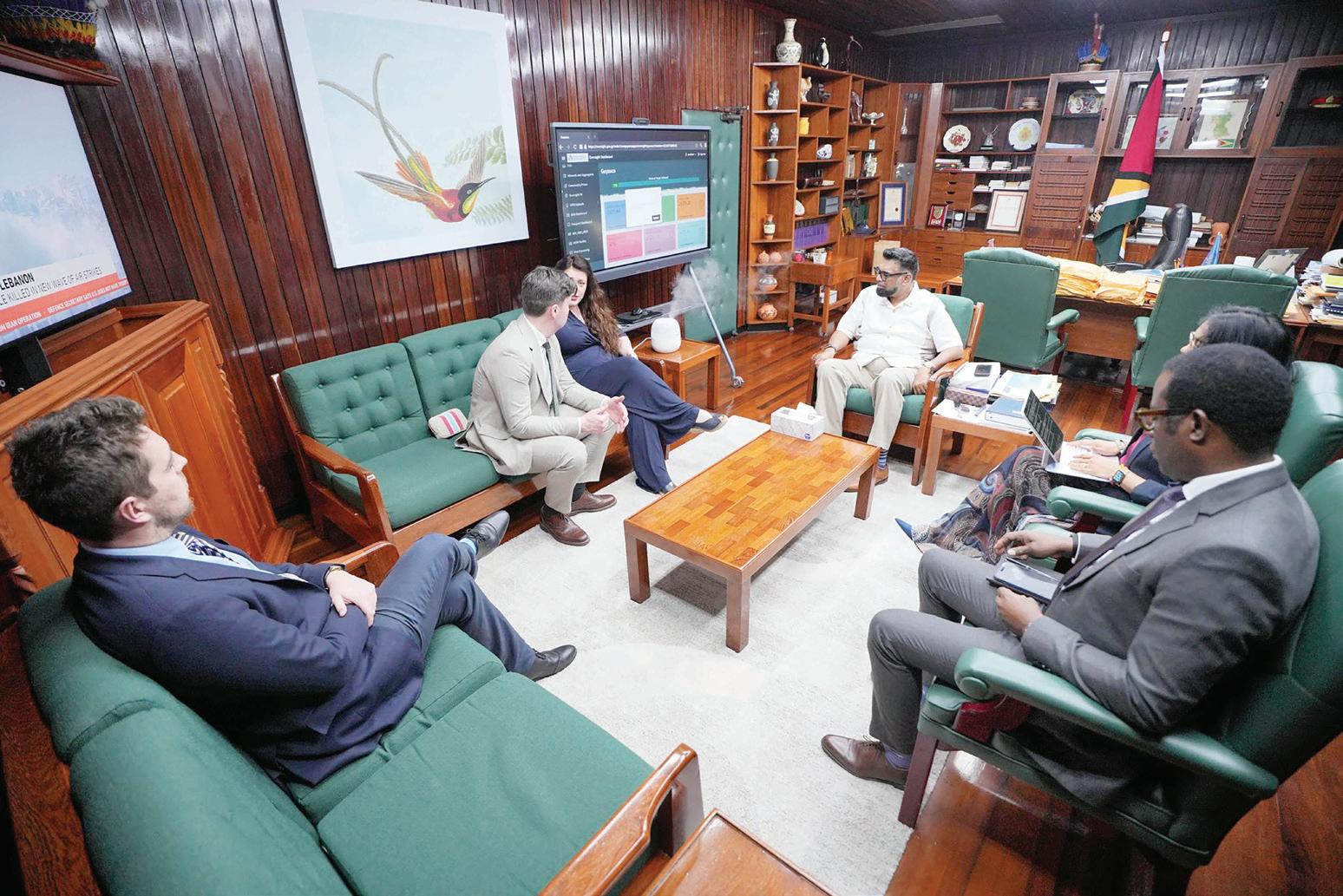 With the intention of establishing operations in Guyana, the team made a presentation on their project at the Office of the President on Monday. President Ali was joined by Agriculture Minister Zulfikar Mustapha during the meeting.