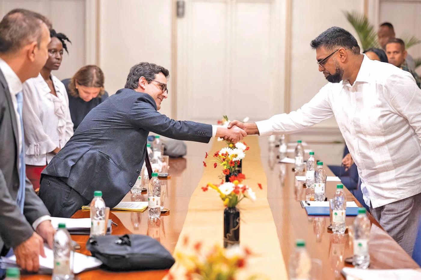 signed a multi-million-dollar deal with Qatar-based Urbacon Concessions Investments, W.L.L (UCI) for the rental of the floating power plant for a period of two years in a move to add much-needed generating capacity to the local grid (GPL photo) Govt examining “innovative ways” to ensure more money in pockets of working class – Pres Ali
