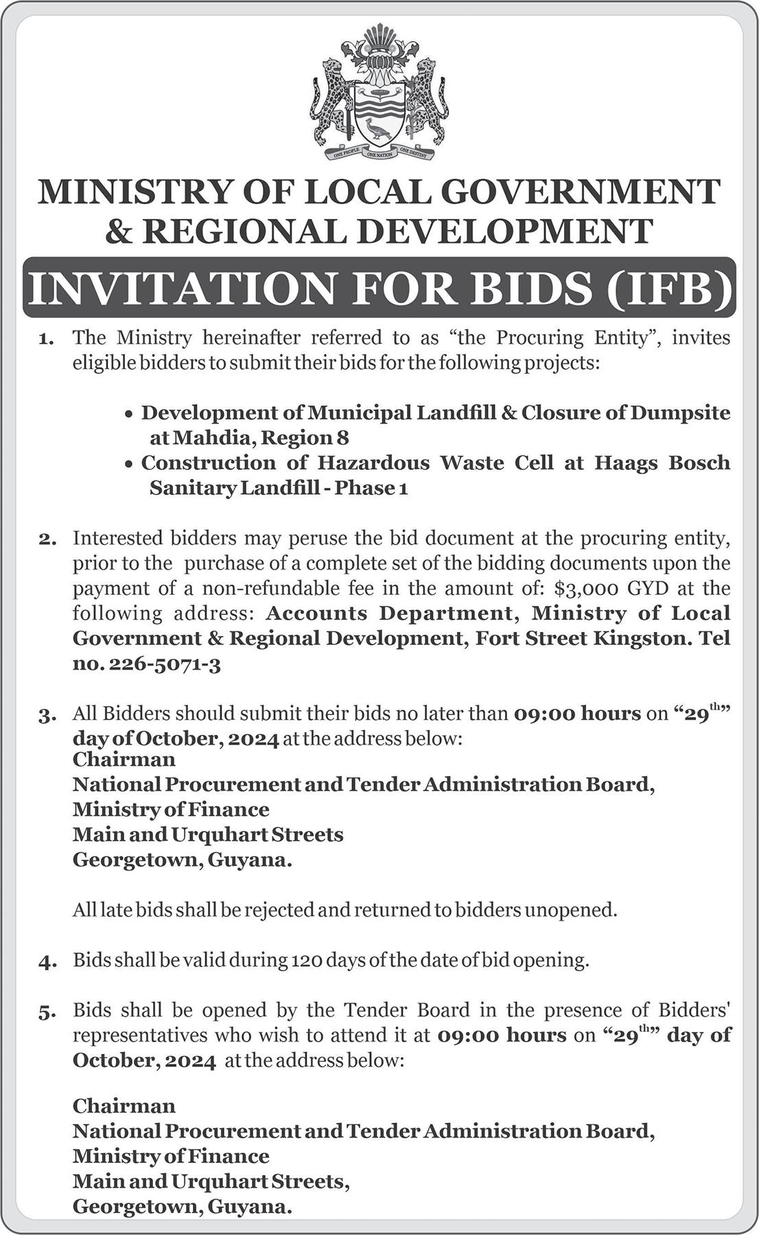 The tender invitation was issued back in August for the ‘Construction of New Defence Headquarter Building & Rehabilitation to Office Spaces – Base Camp Ayanganna BC (A).’ The deadline for submission was August 29, 2024, however, it is unclear whether the contract was awarded.