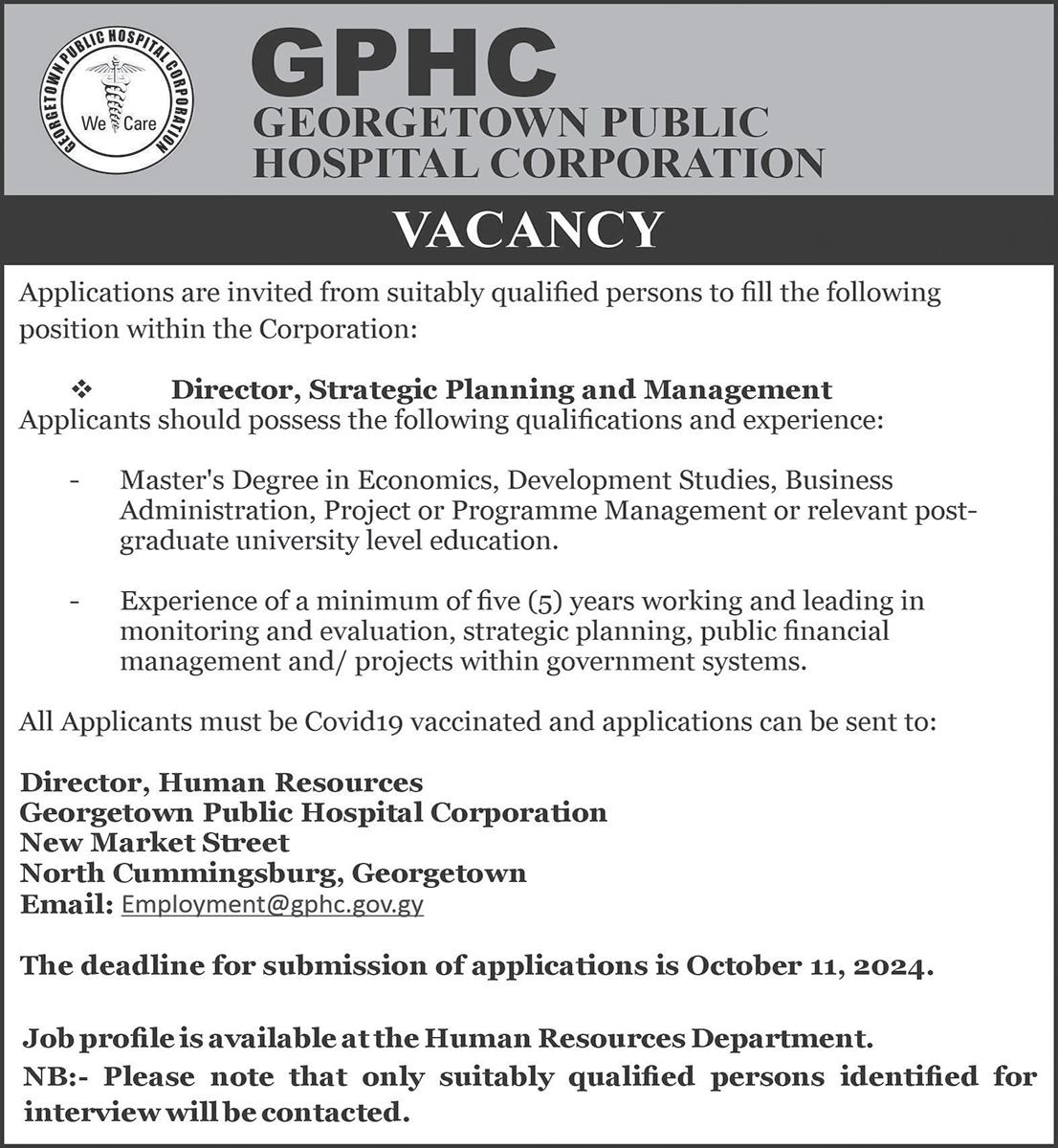 For the Commissioner of Title position, applicants must be an attorney-at-law admitted to practice law in Guyana or any Commonwealth country with at least seven years’ experience.