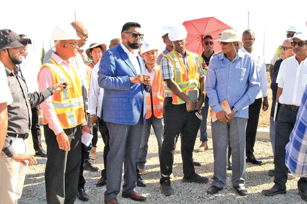 This was revealed by President Dr Irfaan Ali during an inspection of the project site on Wednesday. He was accompanied by Minister of Public Works Juan Edghill, Minister within the Public Works Ministry Madanlall Ramraj, technical officers and representatives from the contracting company, China Railway First Group Co Limited (GRFGC).