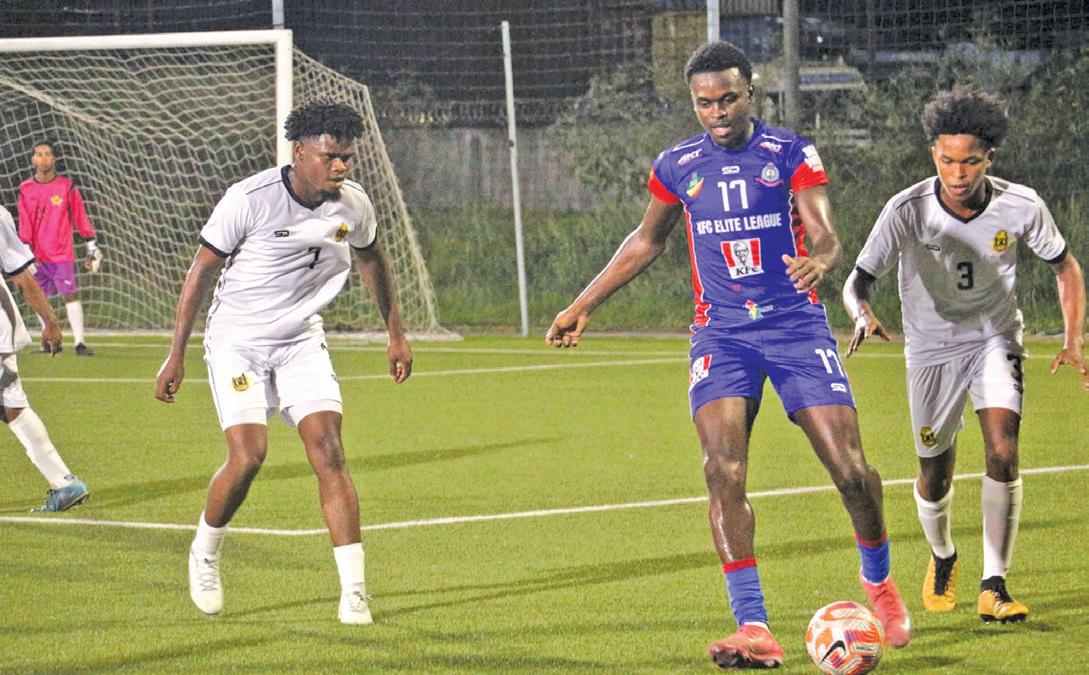 FC kept their recent winning streak going over the weekend, downing an outof-sorts Fruta Conquerors 9-0. Abumuchi Opara led the way with a helmet trick in the 10th, 43rd, 49th and 80th minutes, followed by teenage sensation Quaency Fraser’s brace in the 61st and 90th. In addition, Makhaya Jarvis (75th), Stephen McDonald (69th) and Shakem Welcome (85th) all netted one apiece for GDF.