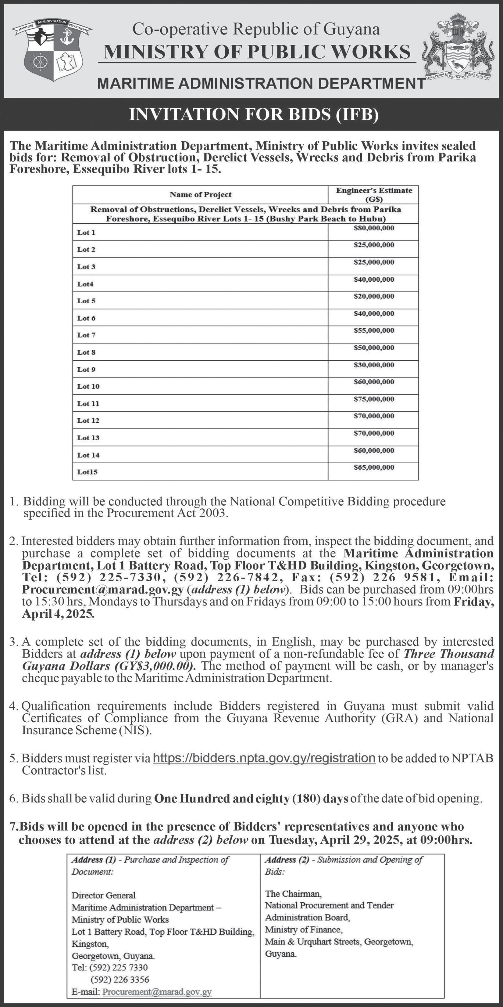 The Berbice Bridge will be closed to vehicular traffic on: Tuesday, April 1 –05:50h-07:20h and Wednesday, April 2 – 06:30h-08:00h.