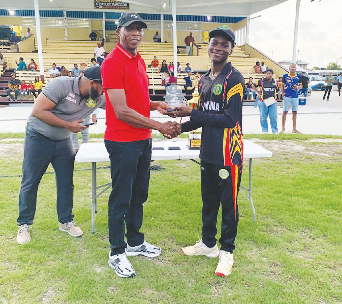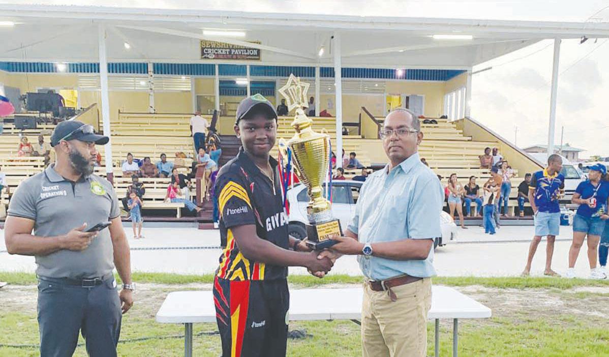 Guyana Captain Lomar Seecharan receiving the series winner trophy