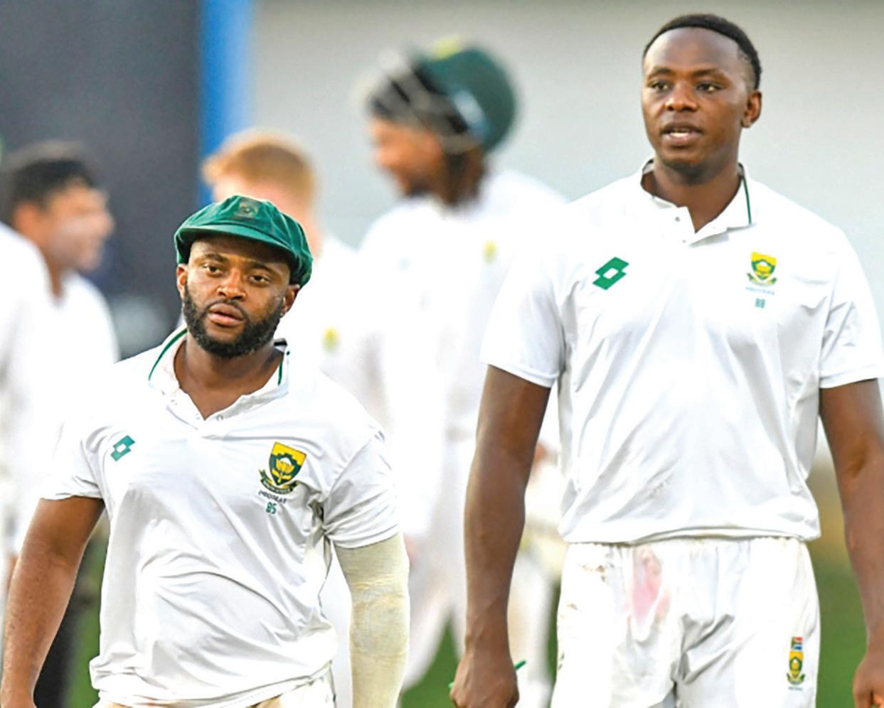 South African Test captain Tembe Bavuma standing alongside bowler Kagiso Rabada