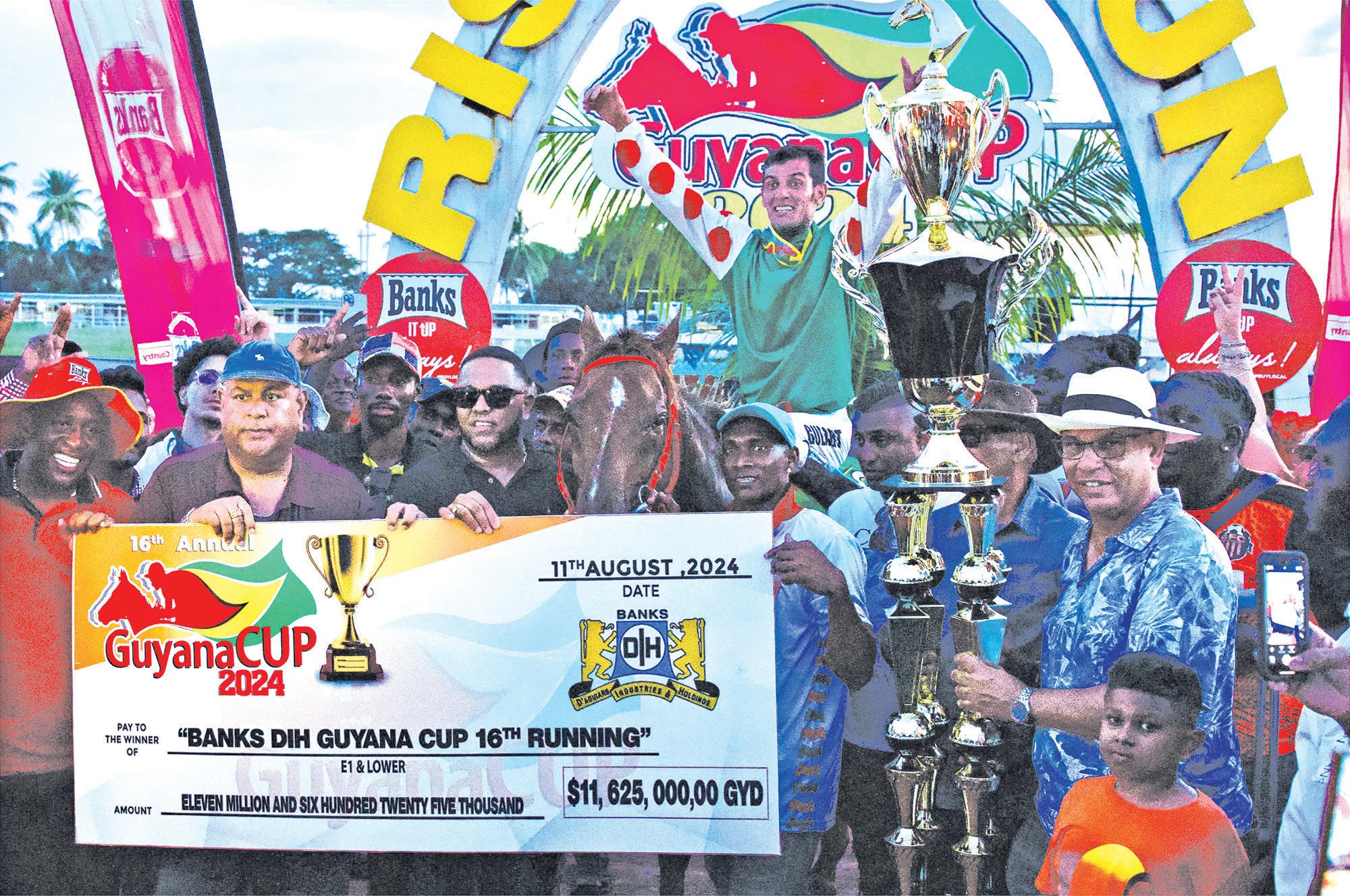 ing, but I have been coming to horse racing in Berbice since I was a kid. Racing in the Guyana Cup is not easy, it is a lot of work and sacrifices. Credit must be given to the entire team, and Nasrudeen Mohamed Jr. especially,” Ali said. “Winning the Guyana Cup is everything for a horseman. To get this trophy means a lot.”
