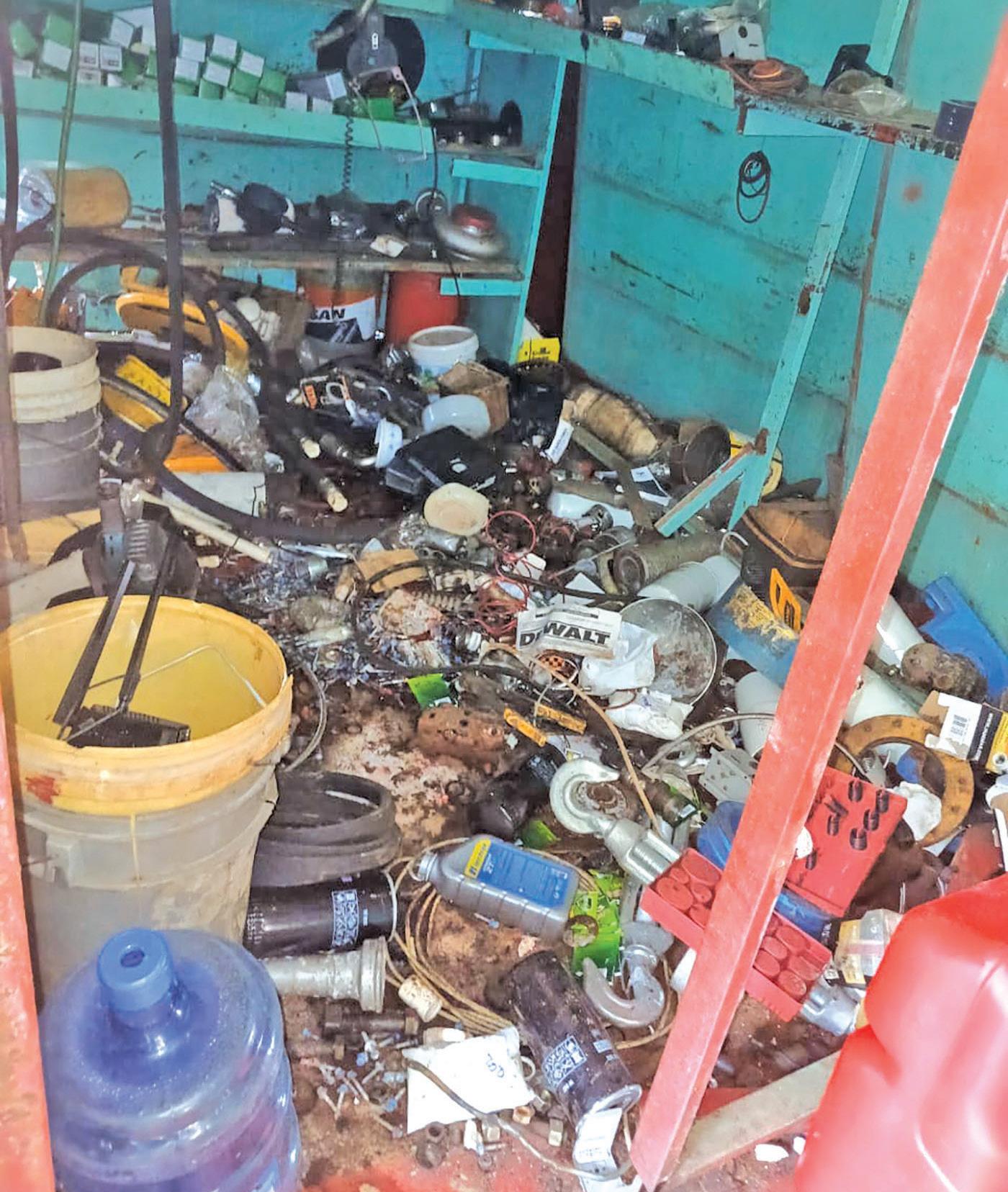 in cash, thirteen coloured cricket uniforms, two trophies, twenty-seven pairs of cricket shoes, thirty-three pairs of batting pads, thirty-five cricket bats, one floppy hat, thirty-two pairs of batting gloves, twenty-five thigh pads, three pairs of wicketkeeping pads, six arm guards, two chest pads, two boxes, twelve cricket bags, six bat rubbers, six helmets, one fiberglass bat, thirteen boxes of white cricket balls, three boxes of red balls, and twenty-eight footballs.