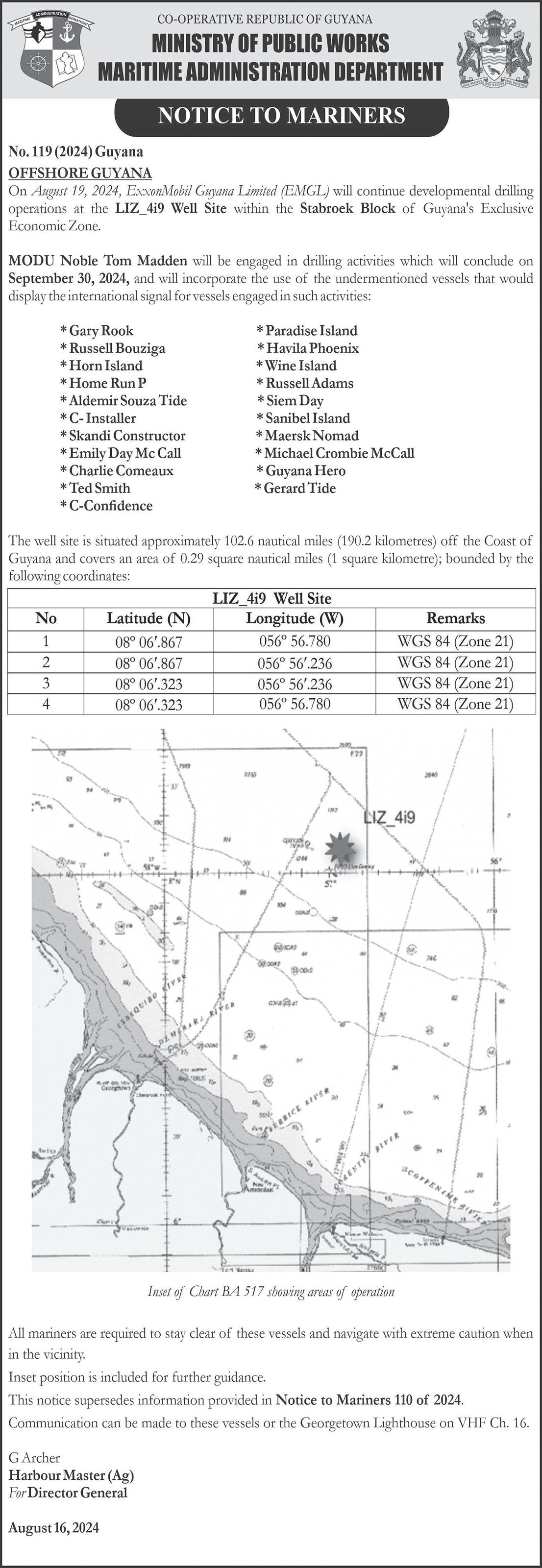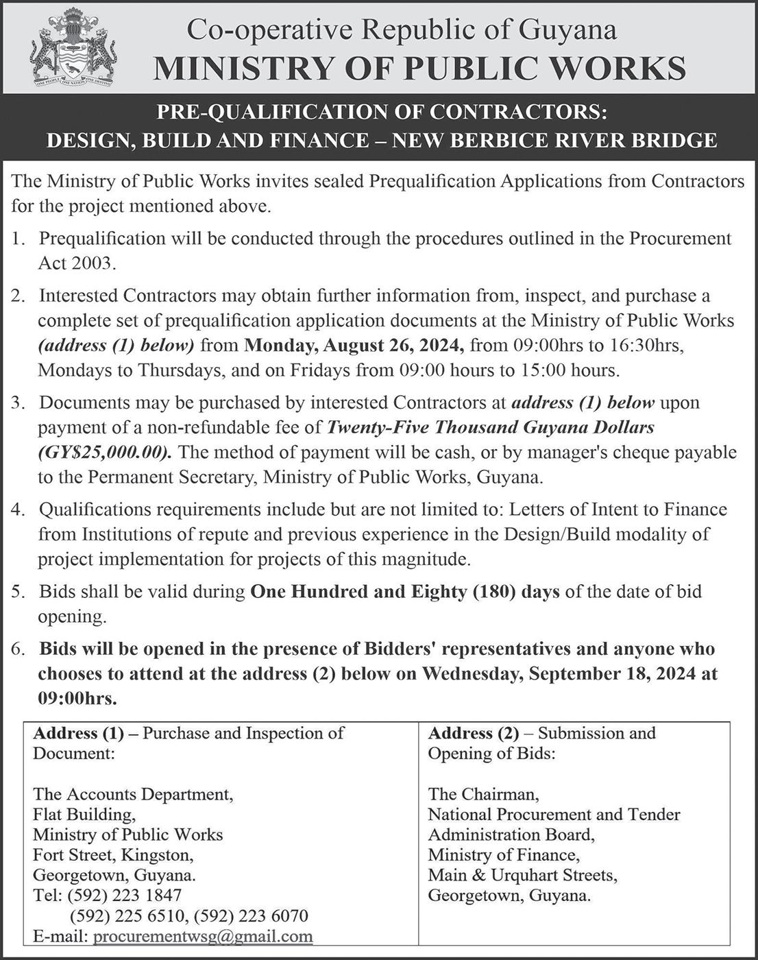 The Demerara Harbour Bridge will be closed to vehicular traffic on: Tuesday, August 20 –04:00h-05:30h