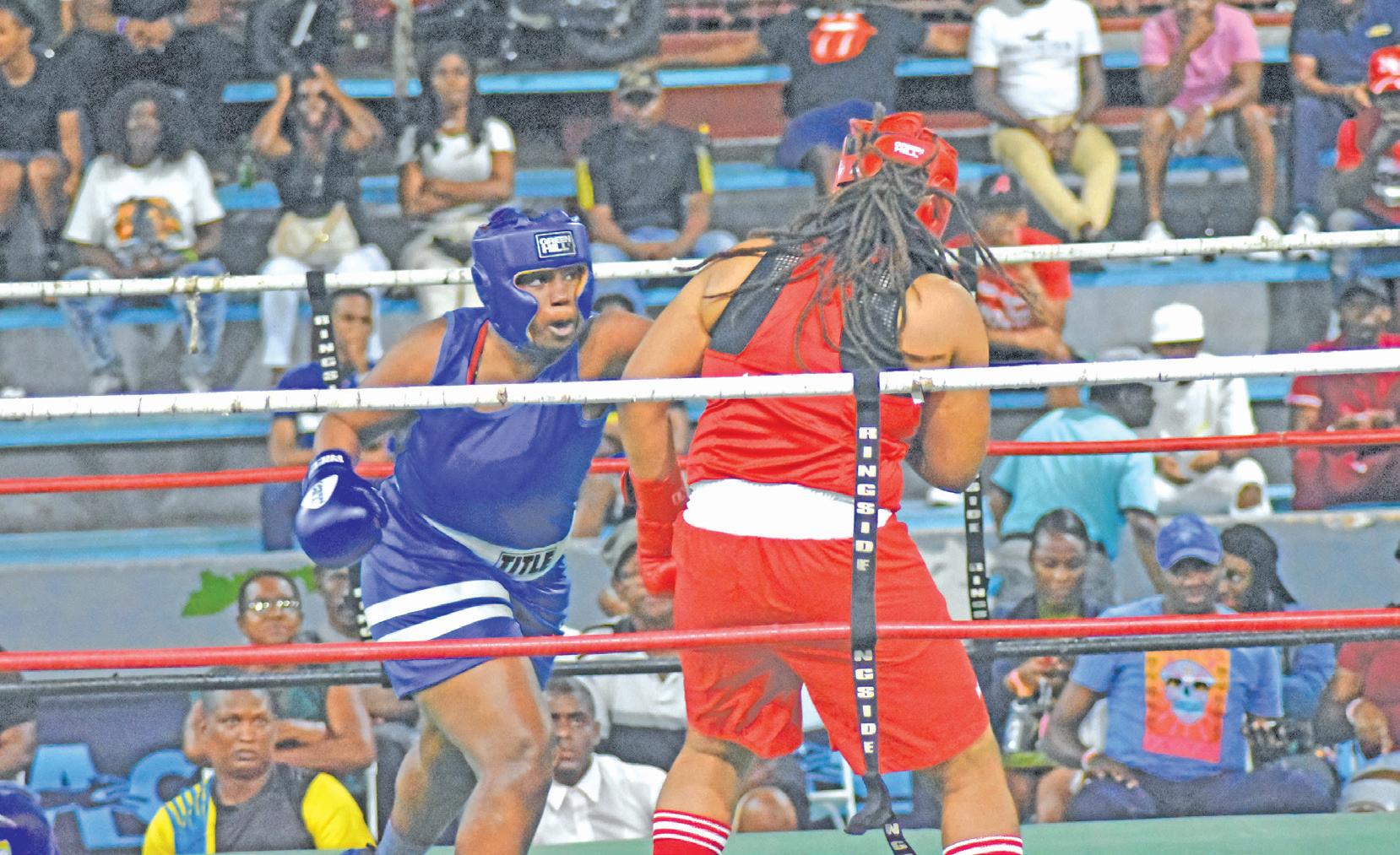 male bout saw Leeann Boodram (TT) overpowering St Lucia’s Nikaela Khodra.