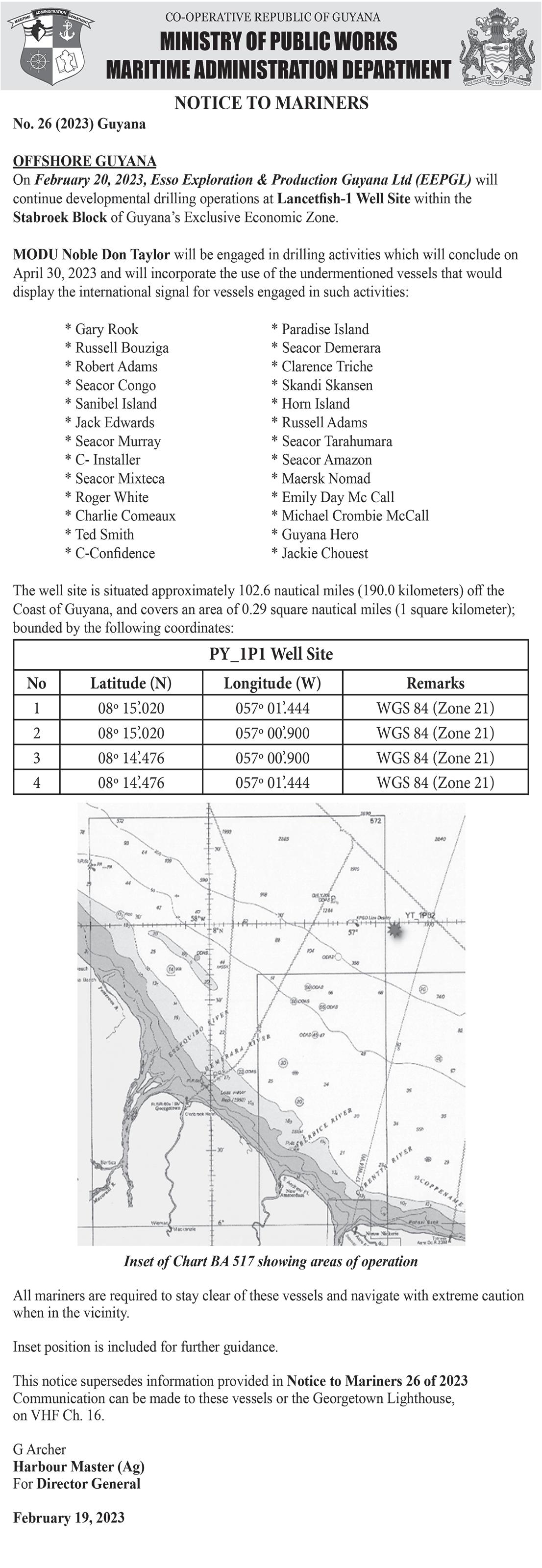 ExxonMobil has said it anticipates at least six projects offshore Guyana will be online by 2027. They are meanwhile seeking project approval for their sixth oil development in Guyana’s waters, approaching the Environmental Protection Agency (EPA) for environmental authorisation for its Whiptail Project. (G3)