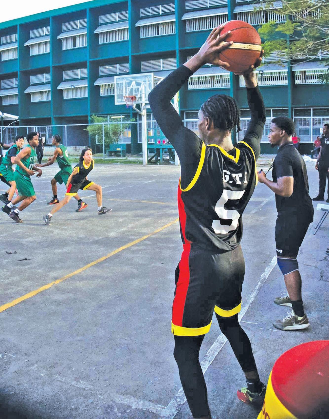 Athrilling contest unfolded at the Burnham Court as the Government Technical Institute (GTI) edged past Queen’s College (QC) 4846 in a pulsating Schools’ Basketball League encounter.