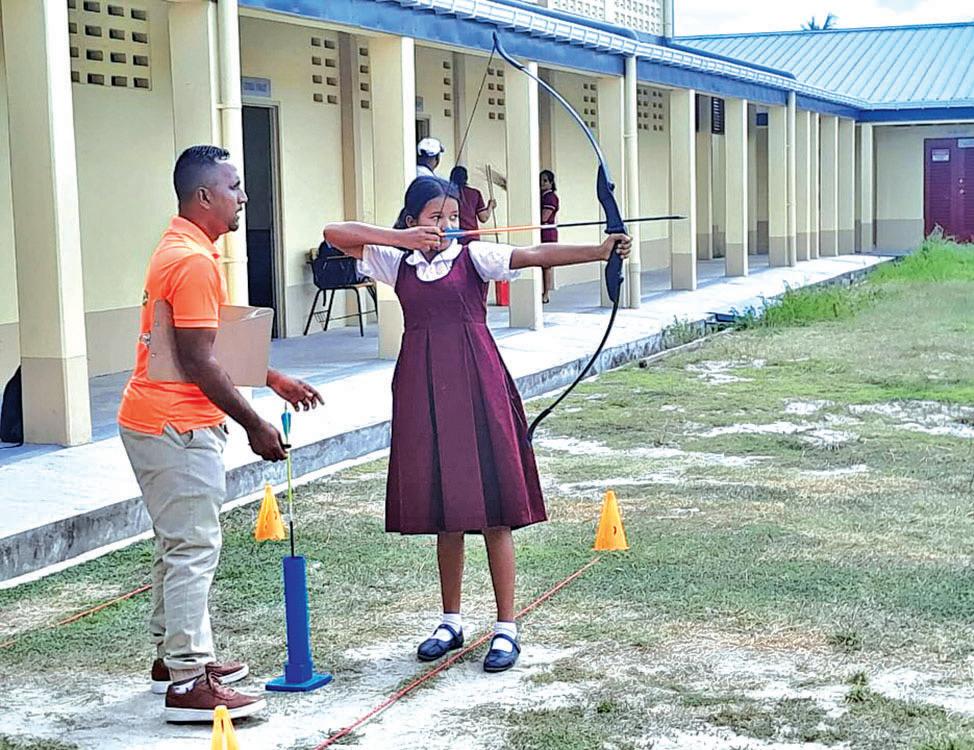 Archery: Students at Good Hope Secondary School were introduced to archery. In photos, an archery trainer works with students as they practise how to use a bow to shoot arrows (Education Ministry photos)