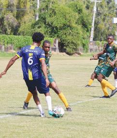 hand his team the lead at the half while Matthew Doris’s second-half brace in the 47th and 79th minutes ensured that they would put a comeback out of reach for Port Mourant.